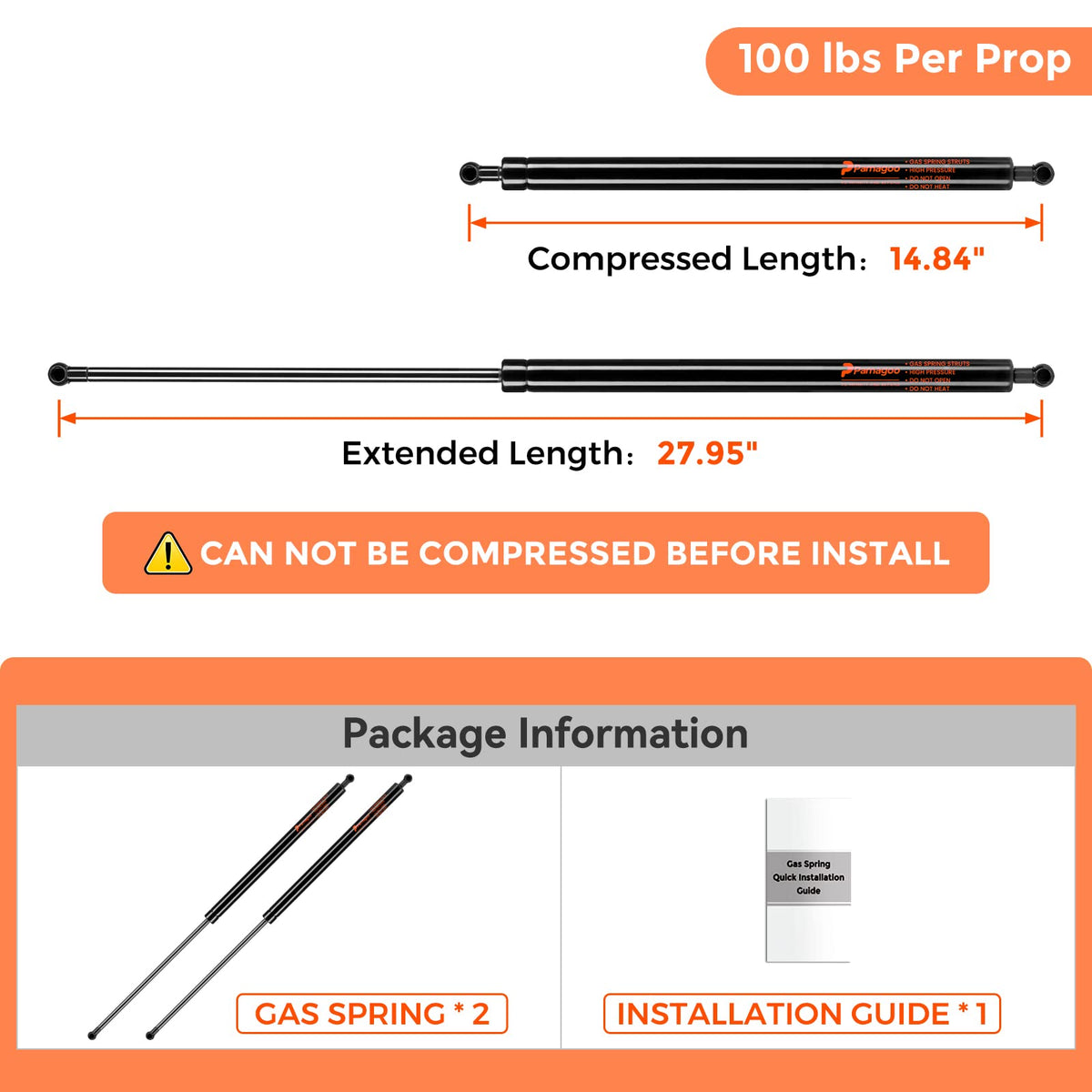 Pamagoo St280M100 28 Inch Gas Strut 100 Lbs 445 N Per Shock, 2 Pack C16-14352 28'' Spring Prop Heavy Duty Lid Lift For Undercove