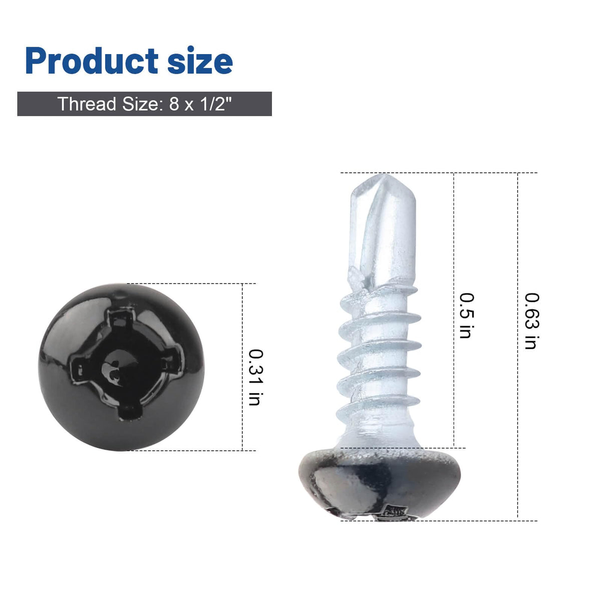 Why Choose Our black pan head self tapping screws? Efficient Applications: Self-tapping screws: Our self-tapping screws for RVs can be directly screwed into the connected material without the need for pre-drilling. They are easy to use and efficient. Non self-tapping screws: These screws require pre-drilling holes in the connected material before screwing them in. They can be cumbersome to use. Product Details: Material: Stainless steel Exterior finish: Galvanized, black coating Head style: pan head self tapping screws Package includes: Pan black head screw 8 X 1/2 - 100 Pcs Black Self Tapping Screws: 1. Easy to use, quad drive twinfast self tapping can tap the thread by themselves without drilling a hole, without requiring the use of nuts, no complicated process for installation convenient for you to apply, saving your time and energy. 2. Higher Quality,made of stainless steel material, galvanizing process and head with black coating, which are sturdy and solid, not easy to rust or corrupted, hard to deform or bend, and can be used for a long time. 3. Wide range of applications, screws for cargo trailers, enclosed trailers, campers, RV Interior/Exterior Screws.