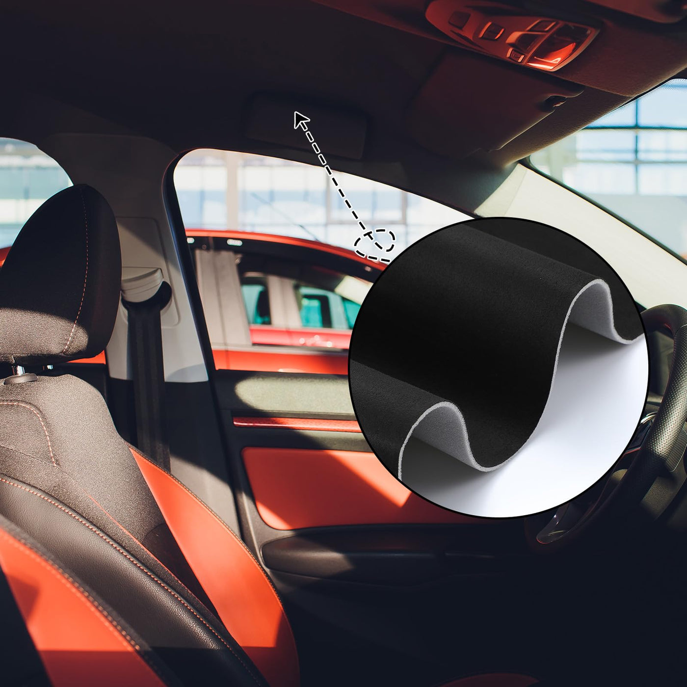 Features: While the synthetic suede fabric is lightweight, it doesn't skimp on durability. This blend of lightness and strength ensures the fabric is easy to handle during installation and sturdy enough to provide reliable service. Built to last, this suede headliner fabric is resistant to typical issues such as sagging, fading, and warping. The foam backing lends an enhanced longevity, ensuring your interiors look brand new for extended periods. Specifications: Material: synthetic suede fabric surface and foam backing Color: black Size: about 80 L x 60 W Package includes: 1 x Suede headliner fabric 1 x Rubber seam roller 1 x Utility knife 10 x Utility knife replacement blades Notes: Manual measurement, please allow slight errors on size. The color may exist a slight difference due to different screen displays. Pointed items are included, please be careful when using, and please keep them away from little.