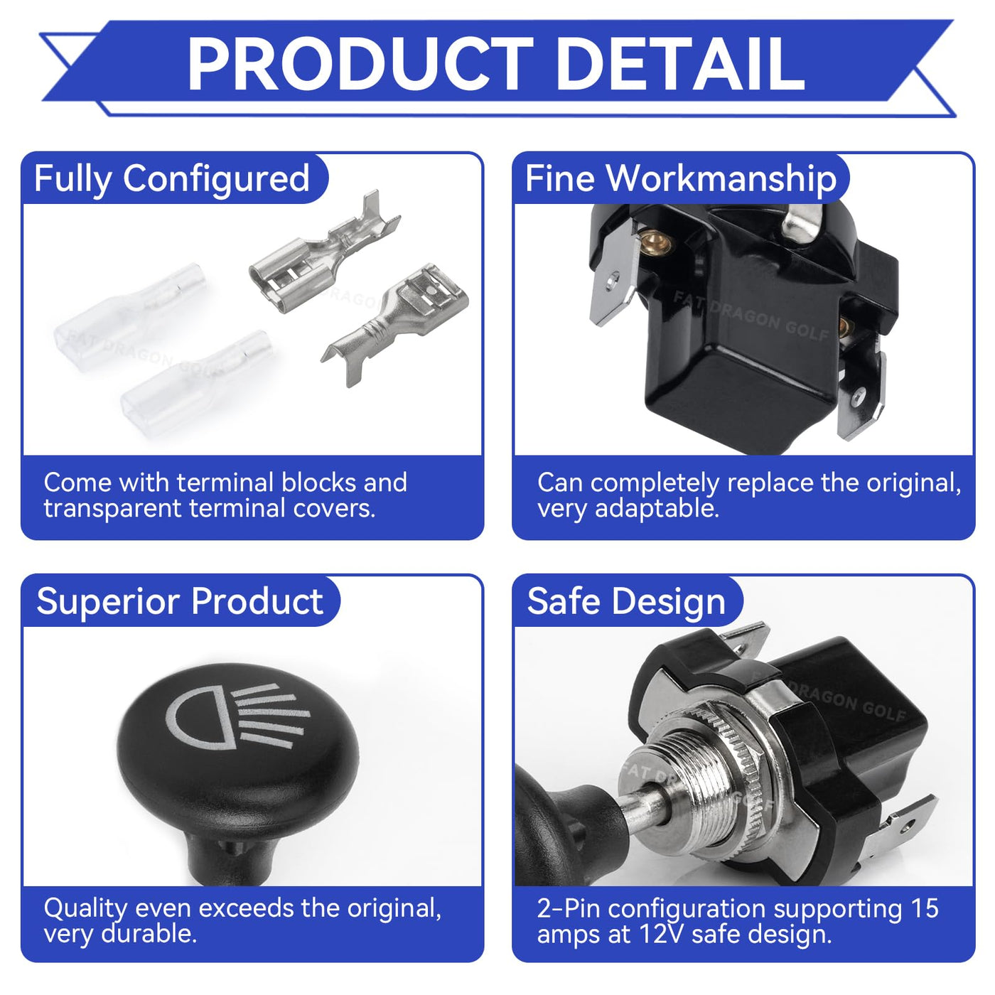 Panglong Universal Golf Cart Light Switch, Push Pull Headlight Switch Button-12Volt Replace For Golf Cart Club Car, Yamaha, Ezgo