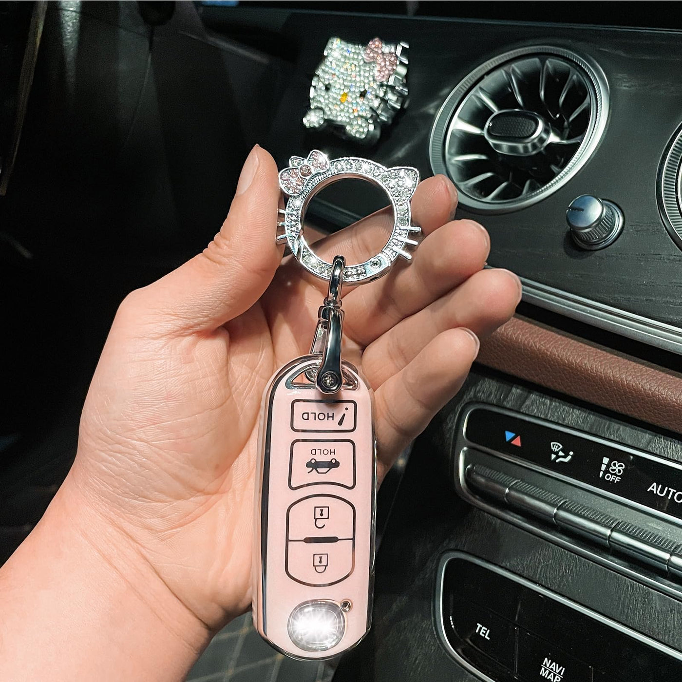 Pangpai Pink Car Accessories 3 Pcs For Mazda 3 6 8 Miata Mx-5 Cx-3 Cx-5 Cx-7 Cx-9 Key Fob Cover With Bling Keychain Cute Push To