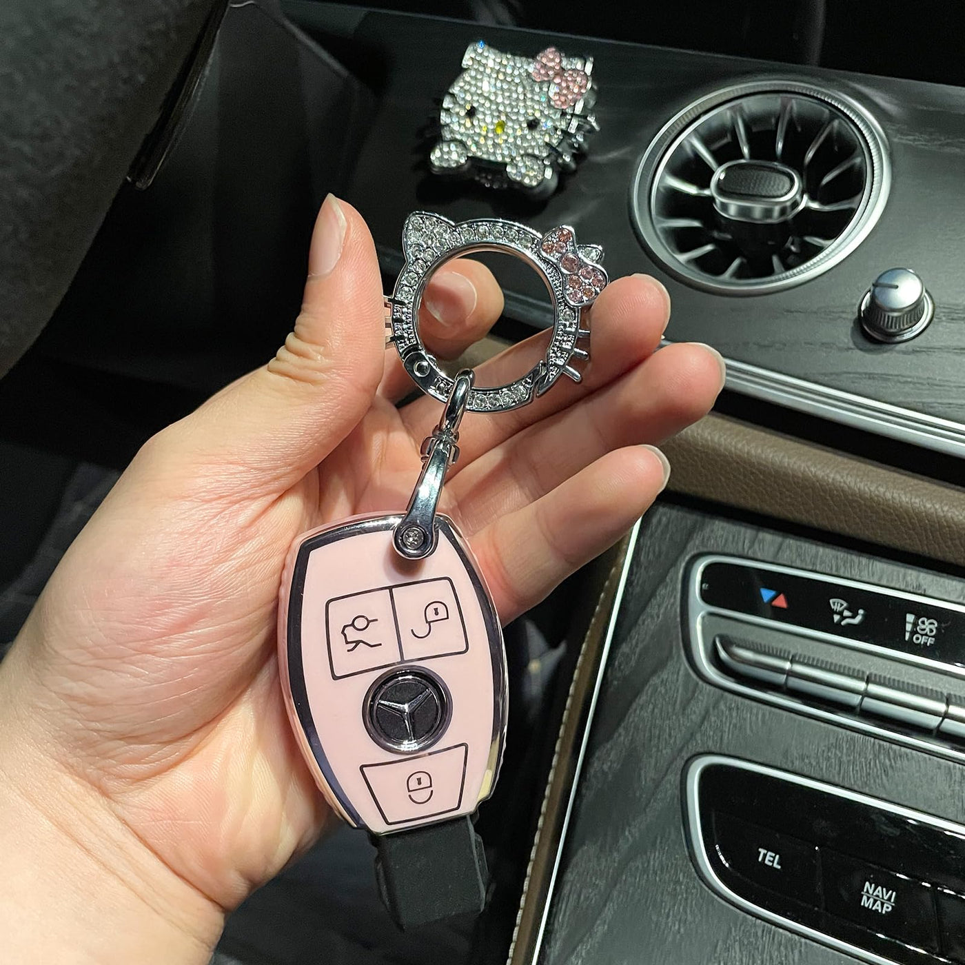 Pangpai Pink Car Accessories 3 Pcs For Mercedes Benz C E S M Cls Clk G Class Key Fob Cover With Bling Keychain Cute Push To Star