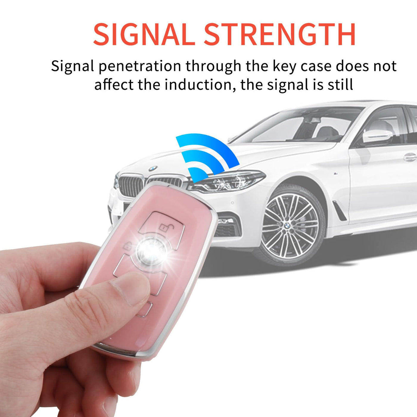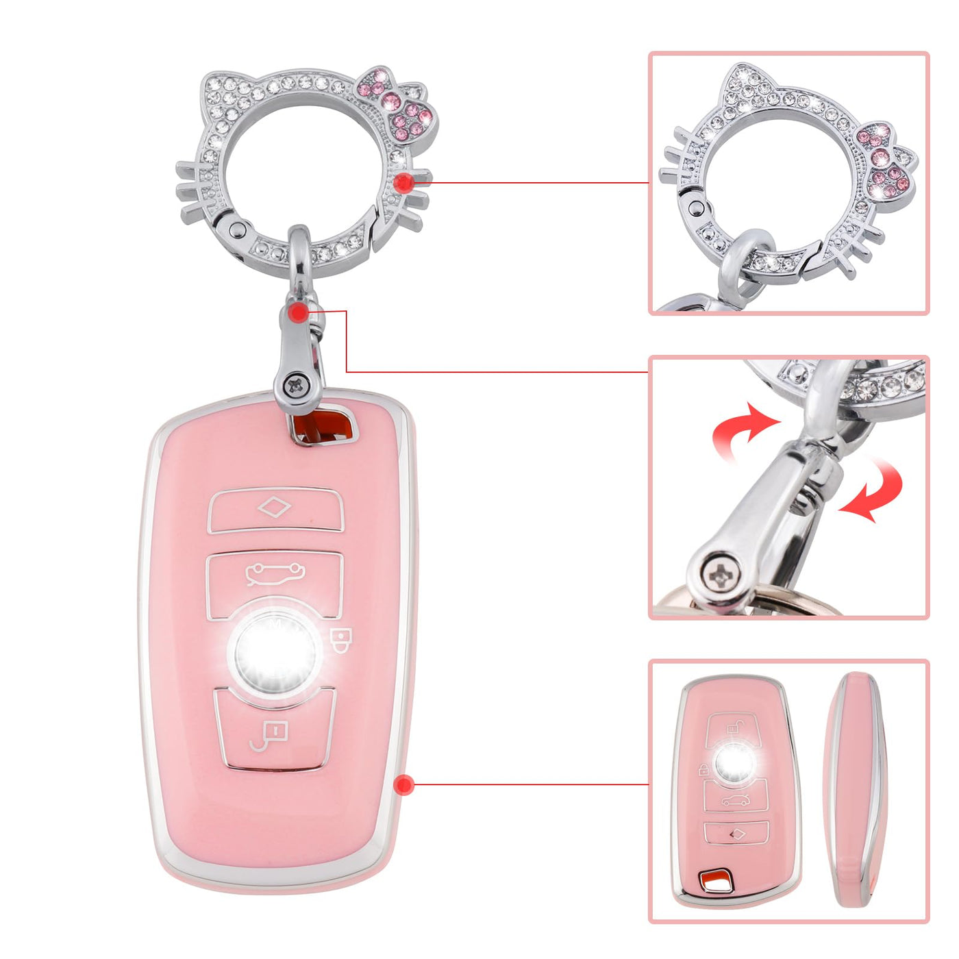 Pangpai Pink Key Fob Cover for BMW, Soft TPU Key Case Protection with Bling Keychain Fit for BMW 2 5 6 7 X1 X2 X3 X5 X6 Series