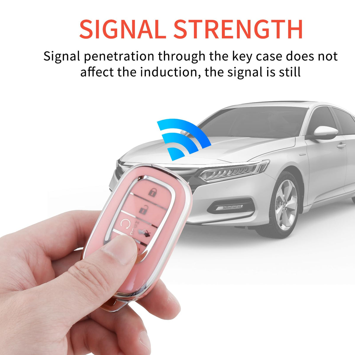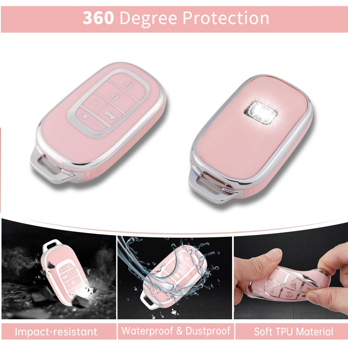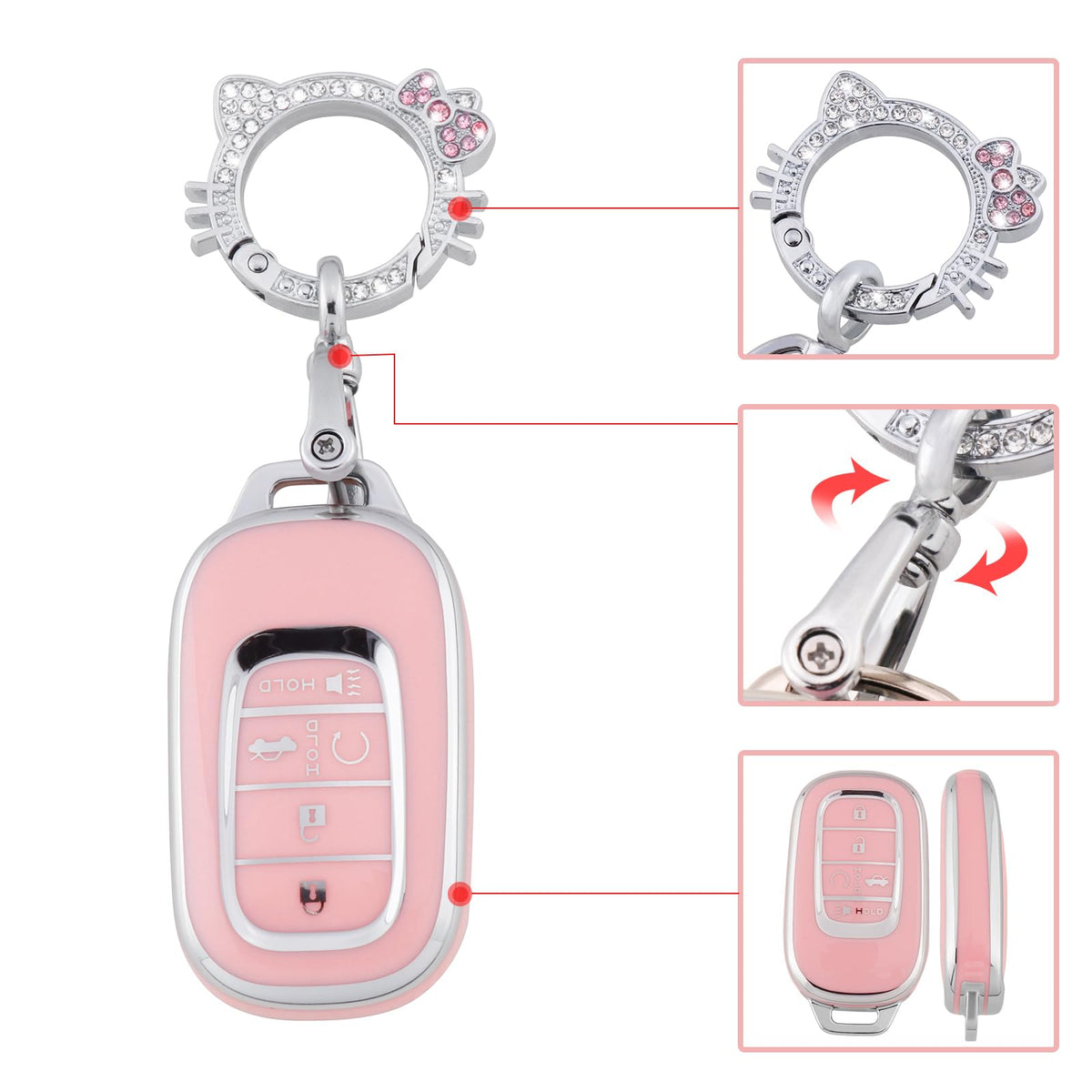 Pangpai Pink Key Fob Cover for Honda, Soft TPU Key Case Protection with Bling Keychain Fit for 2022 Honda Accord Civic CRV Pilot