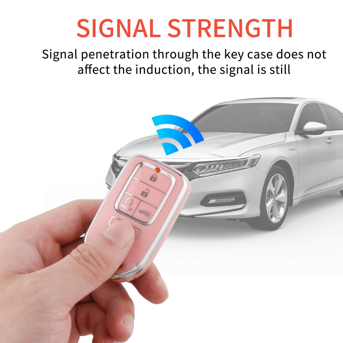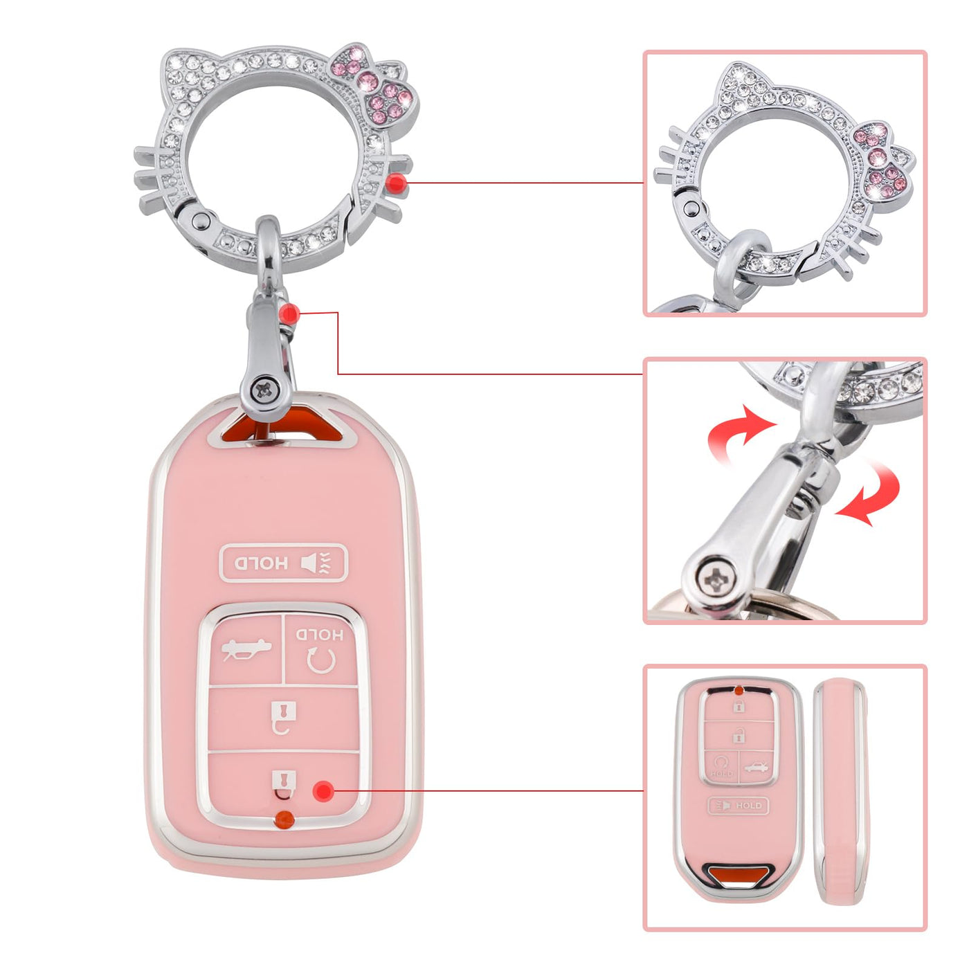 Pangpai Pink Key Fob Cover for Honda, Soft TPU Key Case Protection with Bling Keychain Fit for Honda Accord Civic CRV Pilot Odys