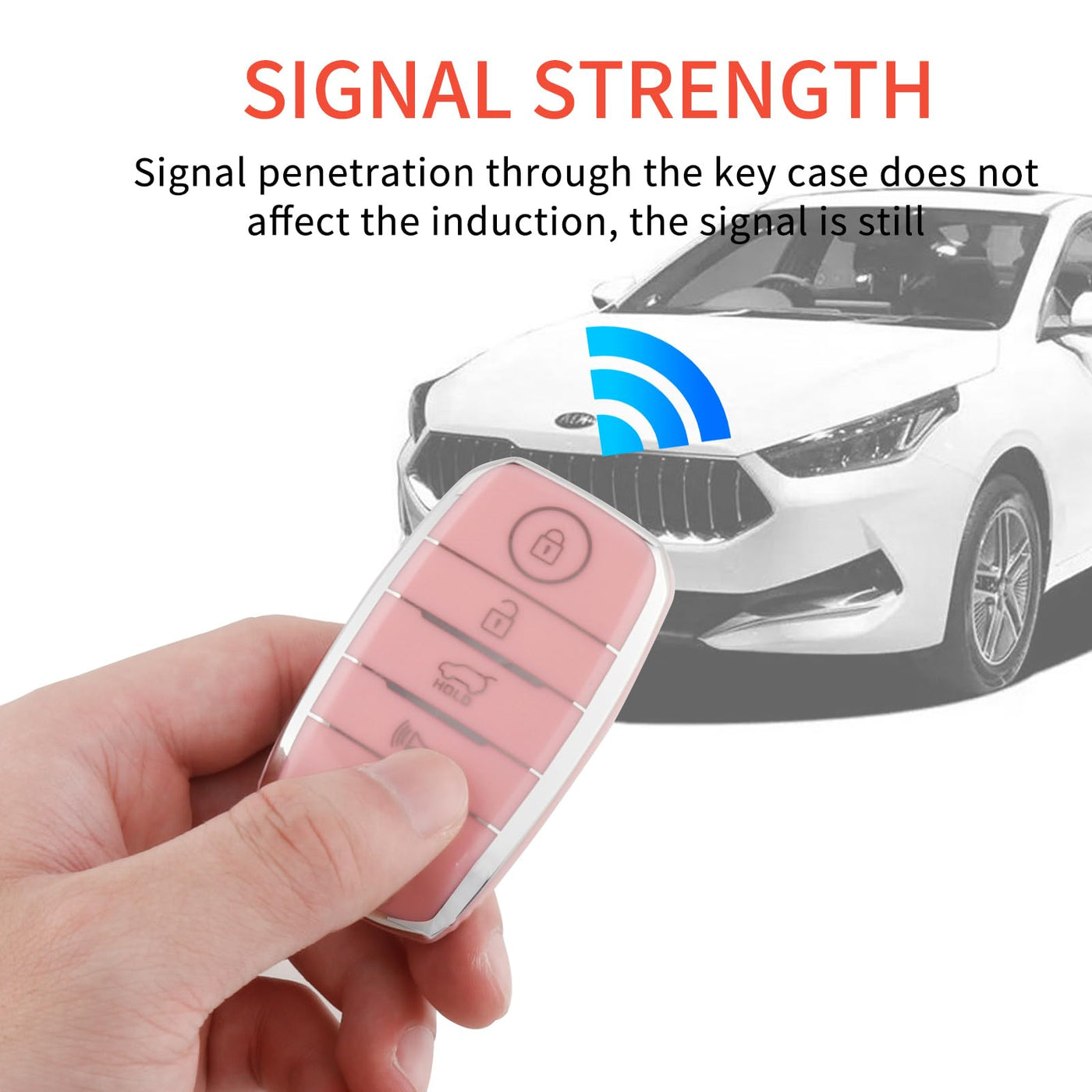 Pangpai Pink Key Fob Cover for, Soft TPU Key Case Protection with Bling Keychain Fit for Kia Forte Koup Niro Optima Rio Sorento Soul Sportage Smart 2 3 4 Buttons Key