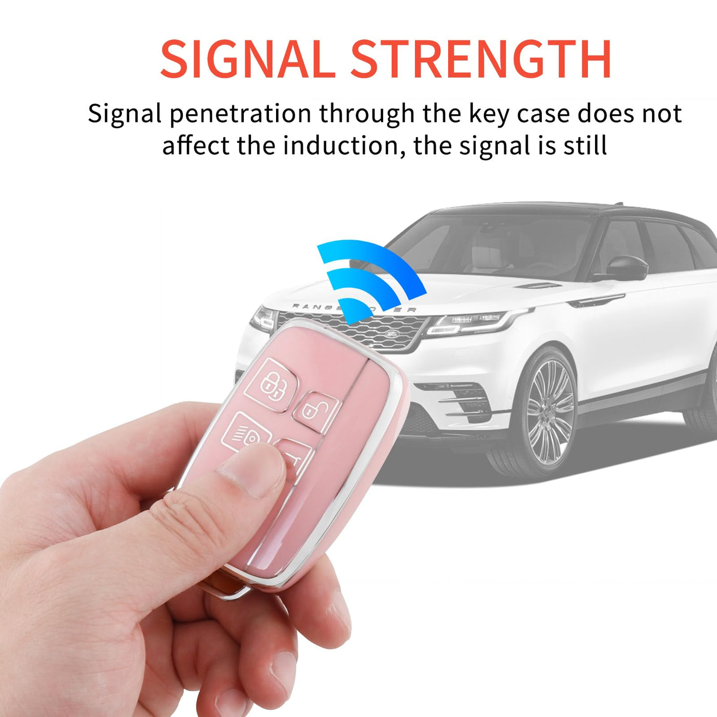 Pangpai Pink Key Fob Cover for Land Rover Jaguar, Soft TPU Key Case Protection with Bling Keychain Fit for Evoque Velar Sport Di