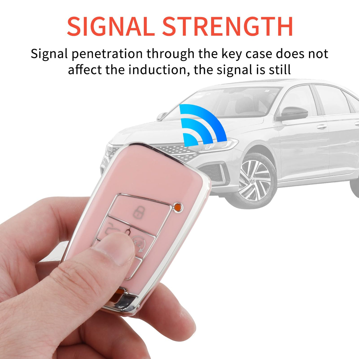 Pangpai Pink Key Fob Cover for VW Volkswagen, Soft TPU Key Case Protection with Bling Keychain Fit for Tiguan Atlas Jetta Passat