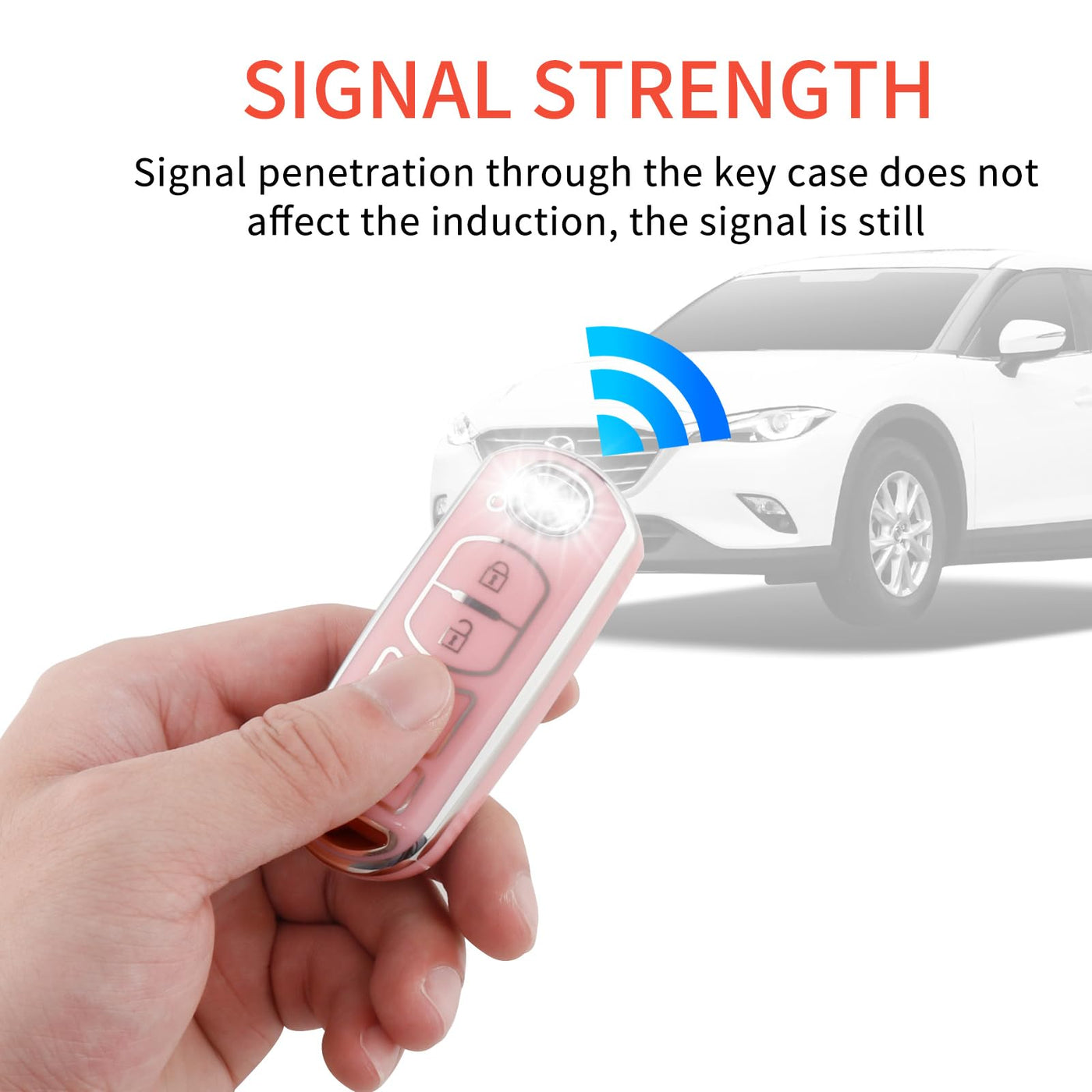 Pangpai Pink Mazda Key Fob Cover, Soft TPU Case with Bling Keychain Fit for 3, 6, Miata MX-5, CX-5, CX-9 Smart Remote