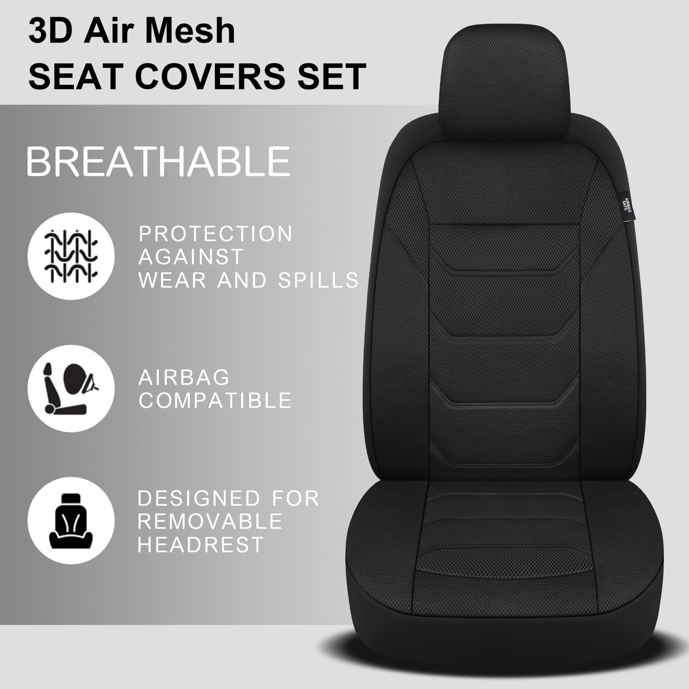 Pariiaotin 3D Air Mesh Car Seat Cover Full Sets Washable and Breathable Premium Cloth Automotive Vehicle Seat Covers for Cars Interior, Universal Fit for Most Cars, Sedan, Truck, SUV(Black)