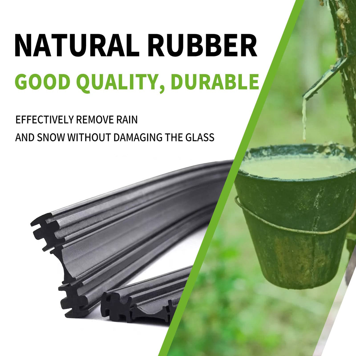 Q: What materials are used in the PARRATI windshield wiper blades?A: The PARRATI windshield wiper blades are made from natural rubber, which provides effective and smooth wiping performance, ensuring no chatter and 0 streak wiping.