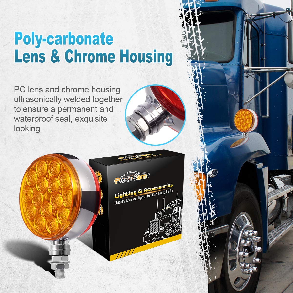 Partsam 2Pc 3'' Round Double Face Red/Amber 30 Led Pedestal Fender Lights Turn Signal Chrome Miro-Reflex Sealed Replacement For