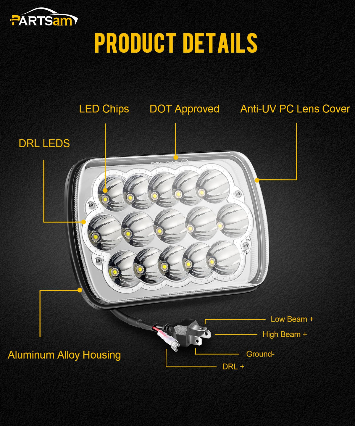 Partsam 2Pcs H6054 Led Headlights 7X6 5X7 Headlamp Anti-Glare Hi/Low Sealed Beam With Blue Drl Lights Compatible With Cherokee X