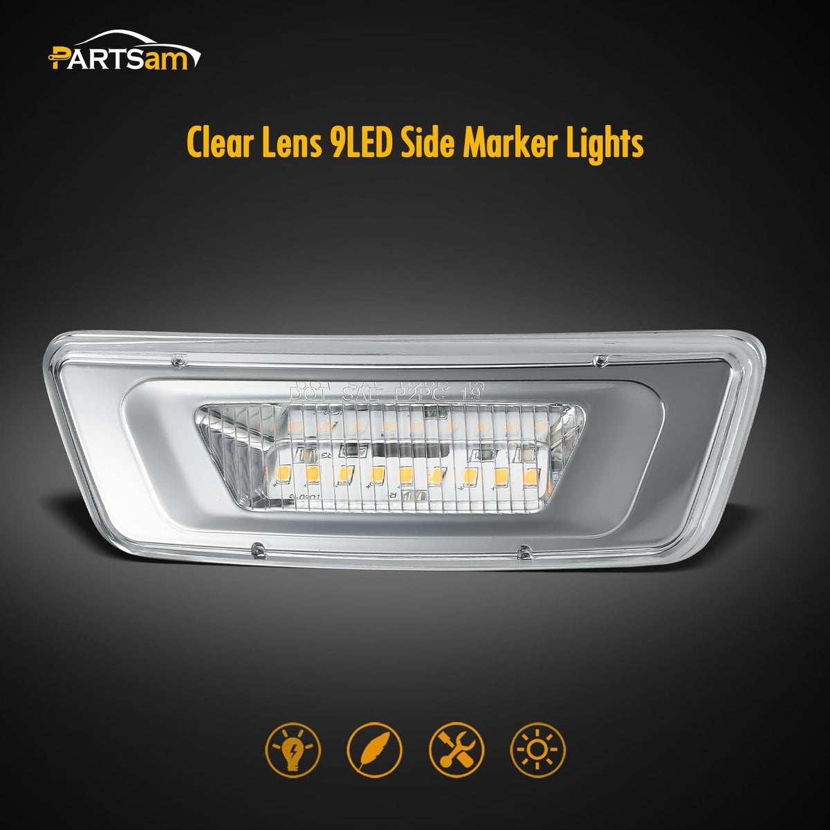 Partsam 2Pcs Replacement For Kenworth T680 T880 And Peterbilt 576 Led Side Marker Turn Signal Lights Assemblies Amber Clear Lens