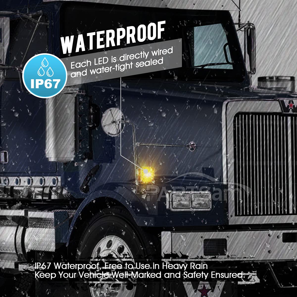 Q: What types of vehicles are compatible with the Partsam Square Dual Double Face LED Lights?A: The Partsam Square Dual Double Face LED Lights are compatible with a wide range of vehicles including trucks, buses, trailers, tractors, excavators, van campers, bulldozers, and cranes. Their universal design allows for easy installation on various heavy-duty vehicles.