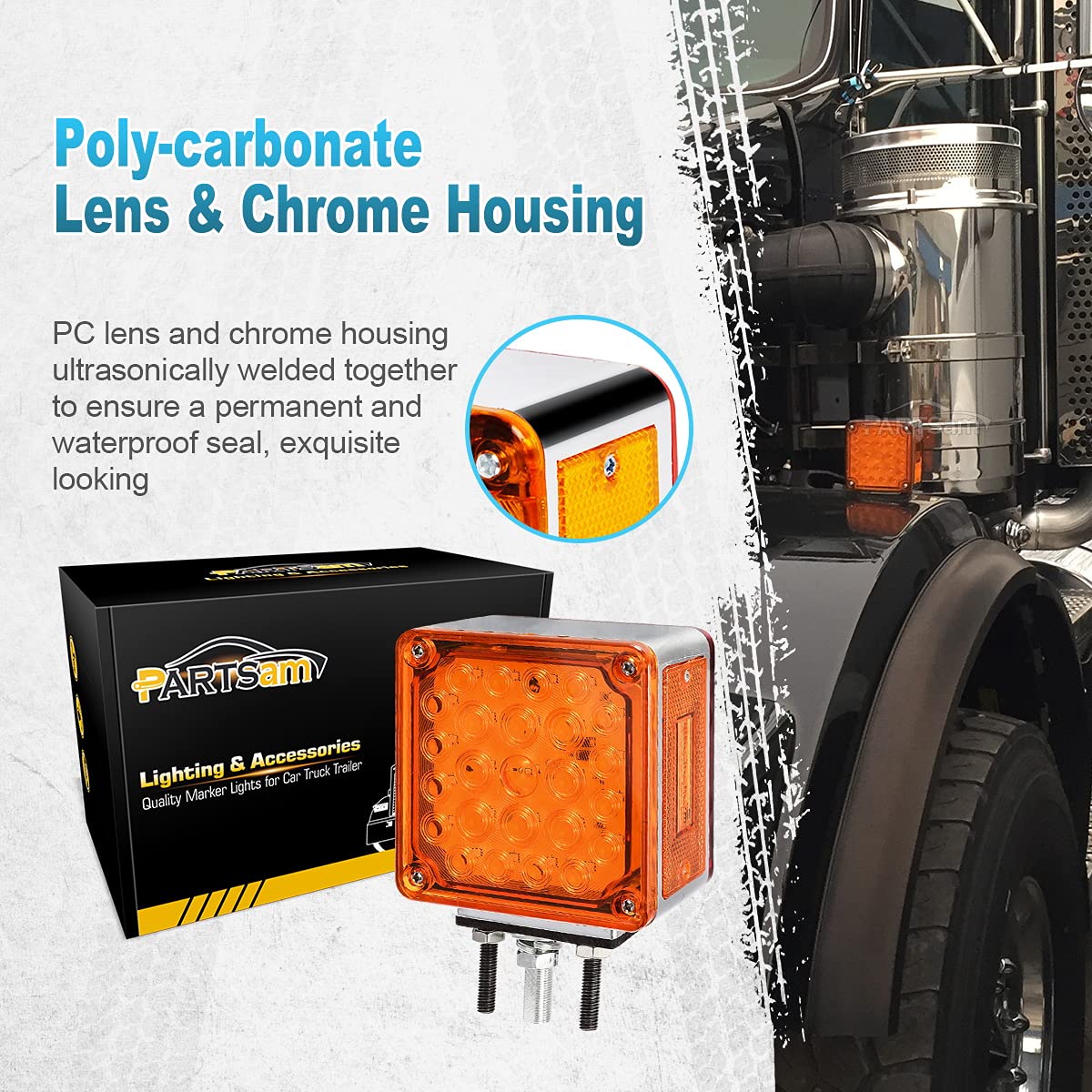 Partsam Is One Of The Largest Automotive Aftermarket Marker Lights Providers In North America. You Can Find All The Marker Lights You Need In Partsam! Specs: - Double Faced Led Pedestal Mount Stop Light - Function: Stop Turn Tail Park Brake & Side Marker Clearance Light - Fit: Truck, Bus, Trailer, Tractor, Excavator, Van Camper, Bulldozer, Crane Etc. - Voltage: Dc12V - Color: Red + Amber - Material: Pc (Polycarbonate) Lens & Chrome Finished Housing - Size: 4.64'' X 4.46'' X 2.51'' 3 Color Wires: - White Is Negative - White + Black: Full Light On In Low Brightness. - White + Red: Back & Front Light On In High Brightness. Features: - Reflector Design, Lower Power Consumption. - Leds Have No Filament, Therefore Are Extremely Resistant To Shock And Vibration. - Leds Have Less Current Draw, Resulting In Increased Battery And Alternator Life. - Epoxy Encapsulated Electronics Protect The Lamp From Damage Caused By Chemicals And Moisture. - Installation Friendly, No Modification Required. Package Includes: 2 X Amber/Red Double Face Stud Mount Pedestal 52 Led Light