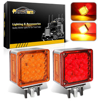 Partsam 2Pcs Square Dual Double Face Fender Stop Turn Signal Tail 52 Led Amber/Red, Truck Trailer Double Face Led Pedestal Light