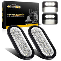 Partsam 2X Oval Clear Lens White Stop Turn Tail Backup Reverse Fog Lights Lamps Rubber Flush Mount 6'' 24 Led For Truck Trailer
