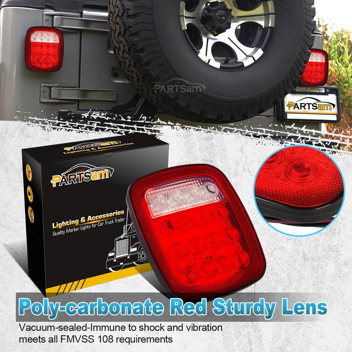 Partsam 2X Universal 16 Led Stop Tail Turn Signal Backup Reverse Brake Clearance Marker Lights Lamps Red/White Replacement For J