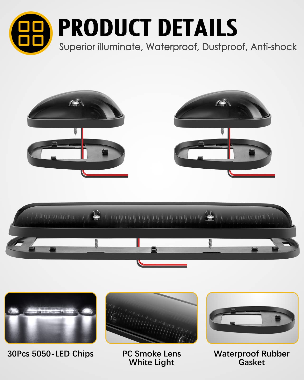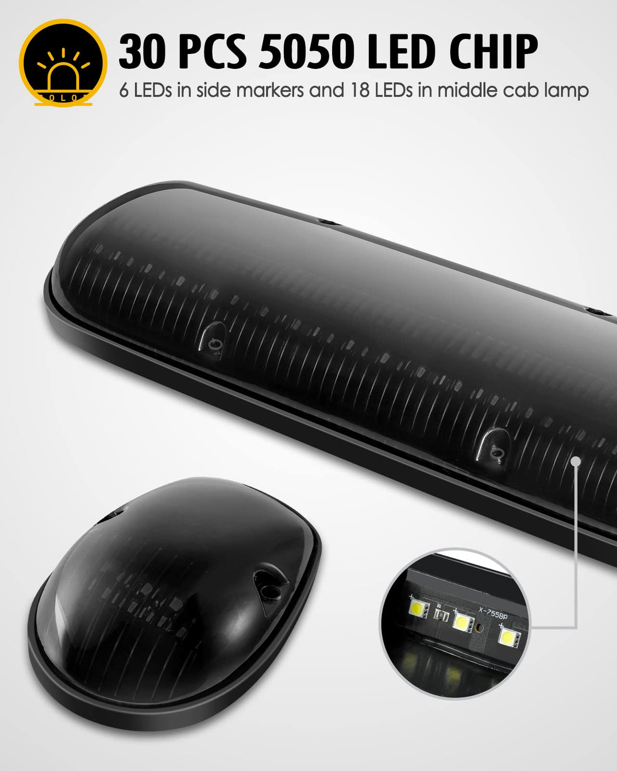 Partsam 3PCS Set High Power White 30 LED Smoke Cover Cab Marker Roof Lights for 2002 2003 2004 2005 2006 2007 Silverado Sierra Dually Trucks.
