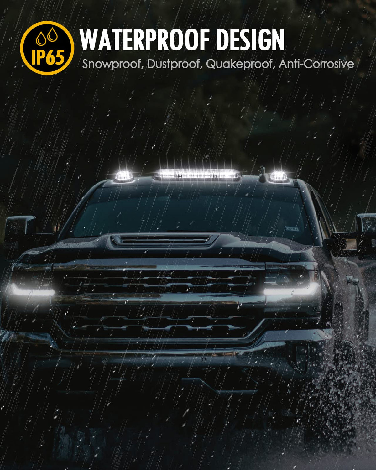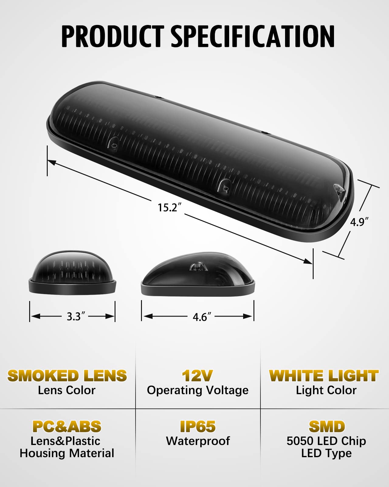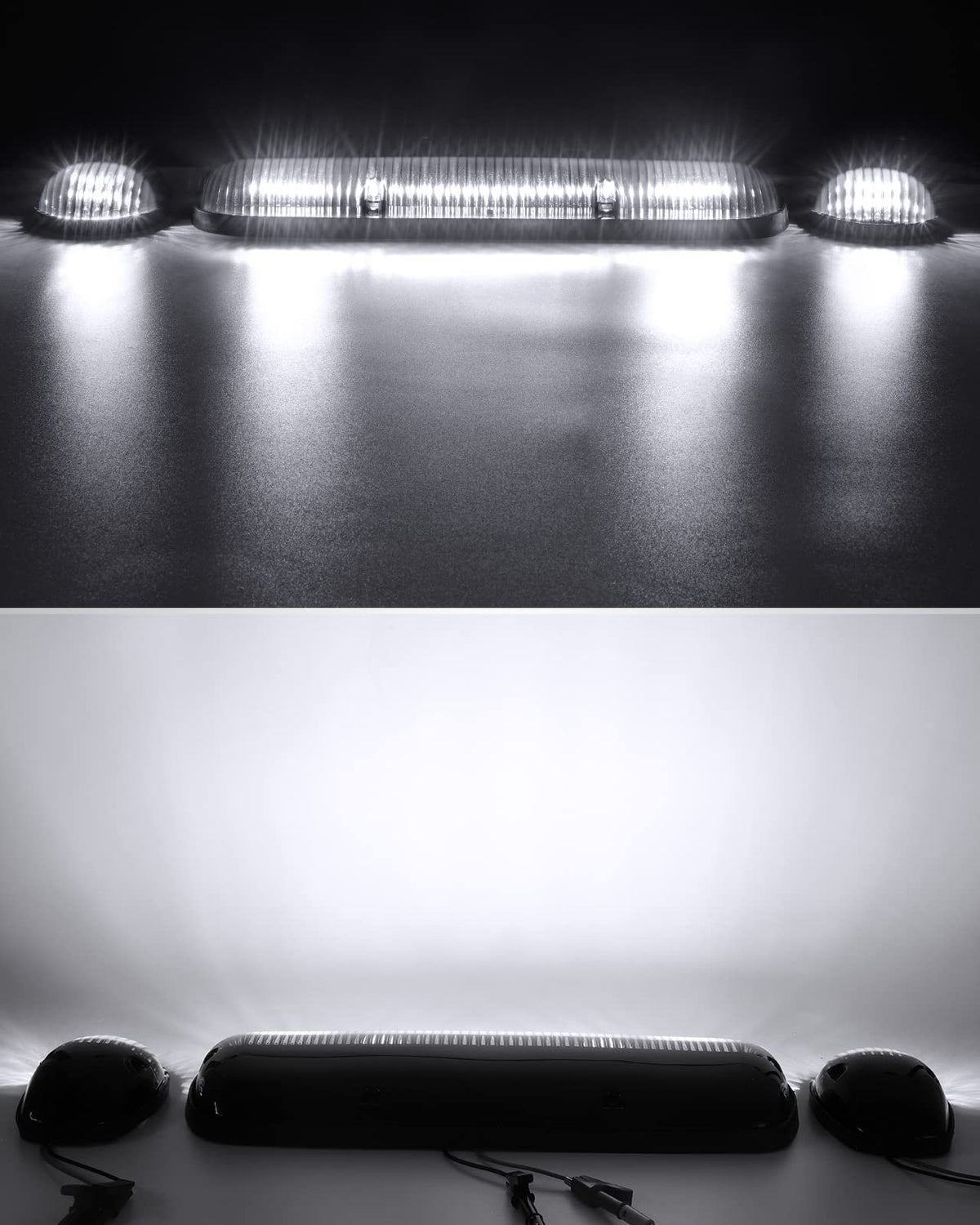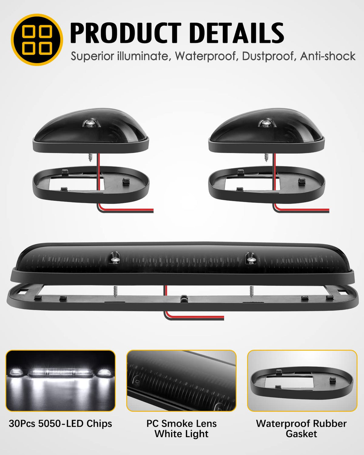 Partsam 3pcs Smoke Cover Lens White 30 LED Cab Marker Roof Running Top Lights Assembly + Wire Pack Compatible with Silverado/Sierra 1500 1500HD 2500 2500HD 3500 2002-2007 Truck