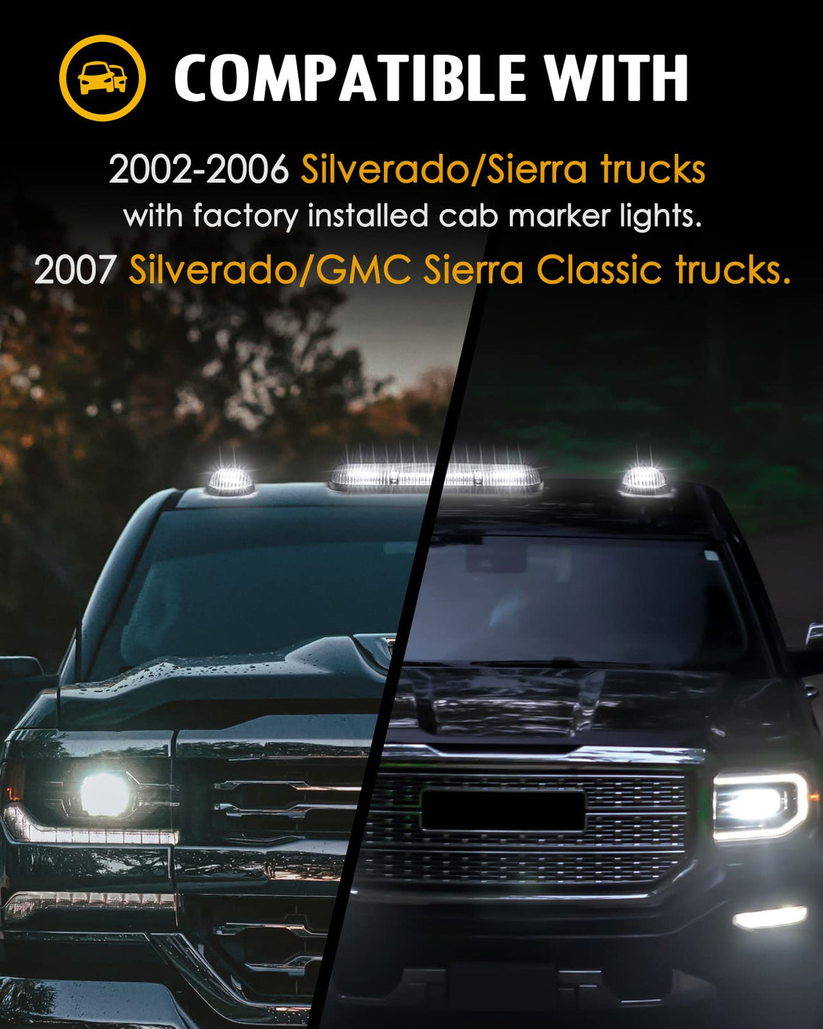 - 2002-2006 Silverado/ Sierra trucks with factory installed cab marker lights.