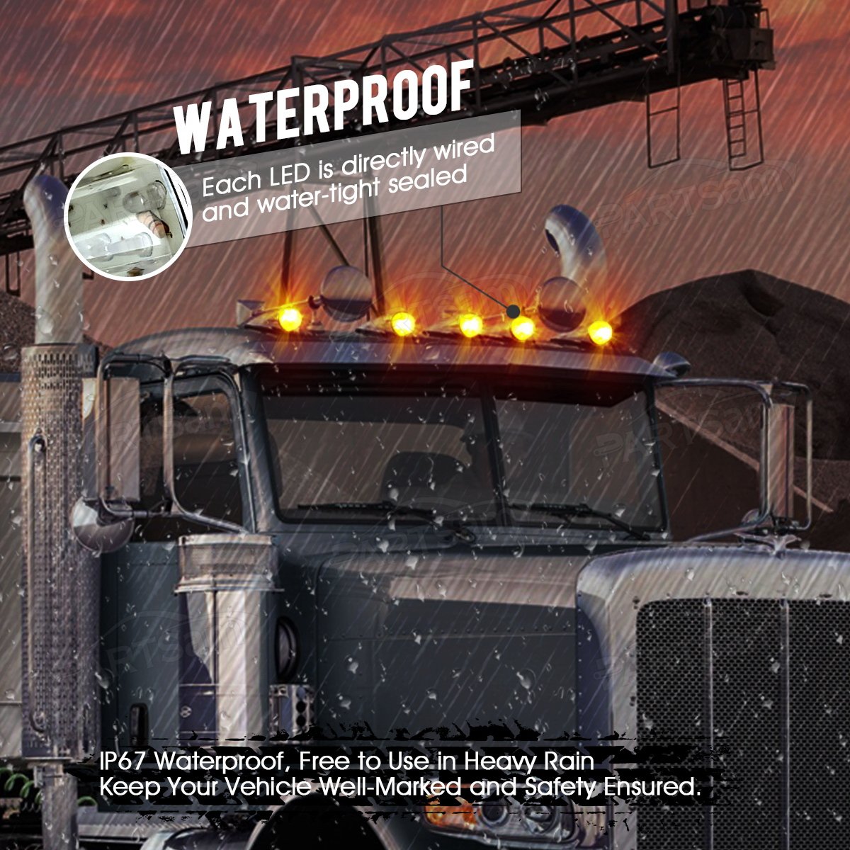 Q: Are these cab marker lights waterproof and durable?A: Yes, the Parstam cab marker lights are designed to be waterproof and impact resistant, making them less susceptible to shock damage. Each LED is directly wired and water-tight sealed, ensuring longevity and reliability in various weather conditions.