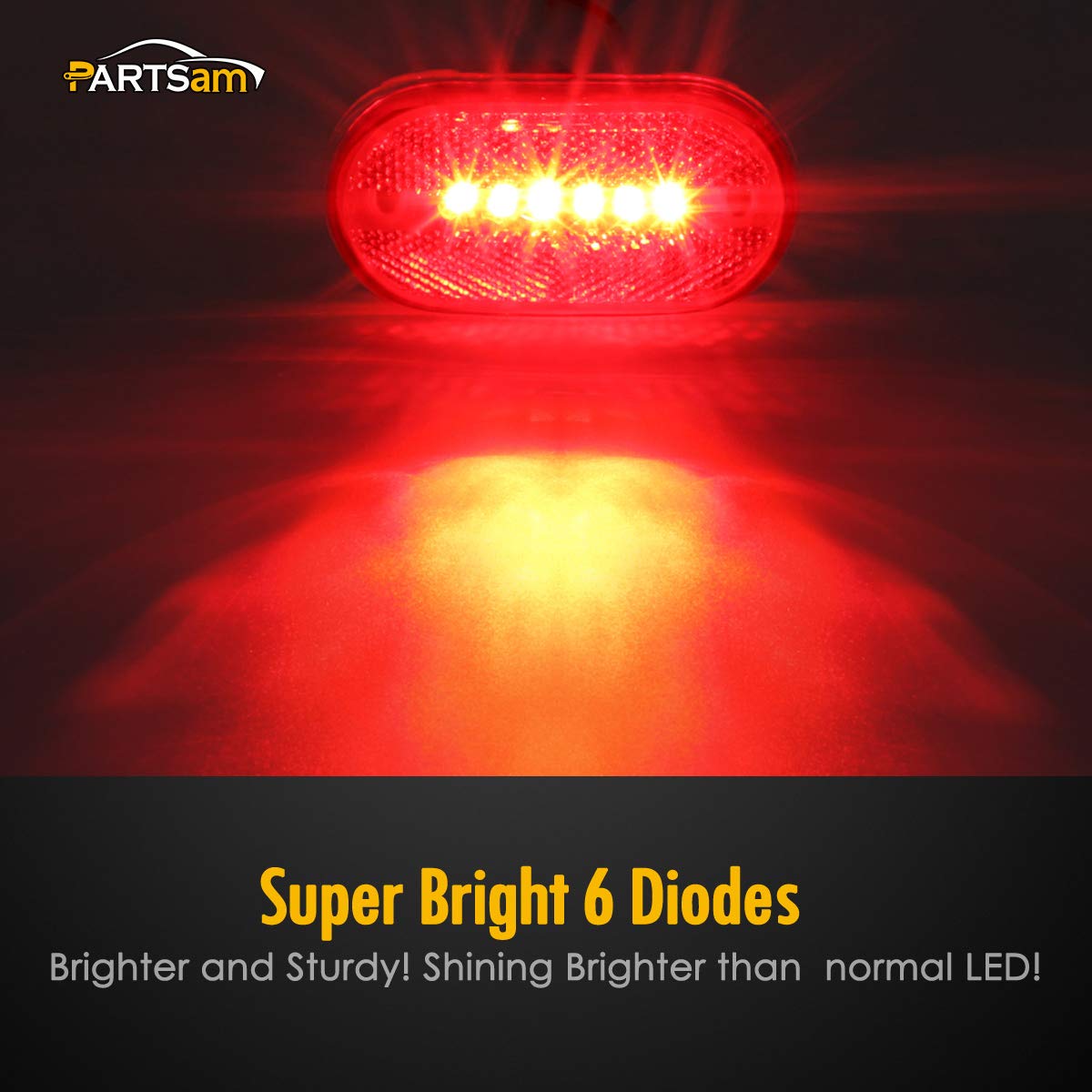 Partsam 5Pcs 12V 4 Inch Oblong Red Side Marker Clearance Lights 6 Diodes With Reflex Lens [Dot Certified] Surface Mount 2X4 Rect