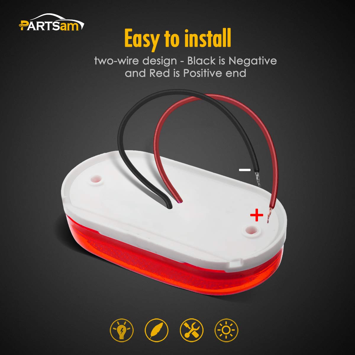 • Q: How do I install the Partsam 4 Inch Marker Lights? A: Installation is straightforward; the lights come with two wires: red for positive and black for ground. You will need to drill a hole in the frame of your vehicle to install the lights. Ensure to use the included screws for secure mounting and consider sealing the edges with silicone to prevent leaks.