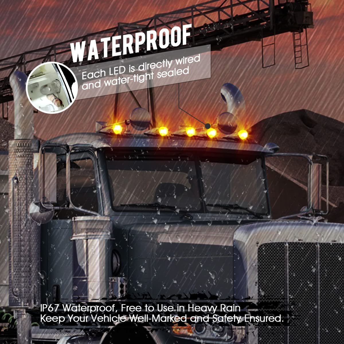 Partsam 5Pcs 17 Led Amber Torpedo Cab Marker Roof Running Top Lights Assembly Super Bright Chrome Heavy Duty Trucks Replacement