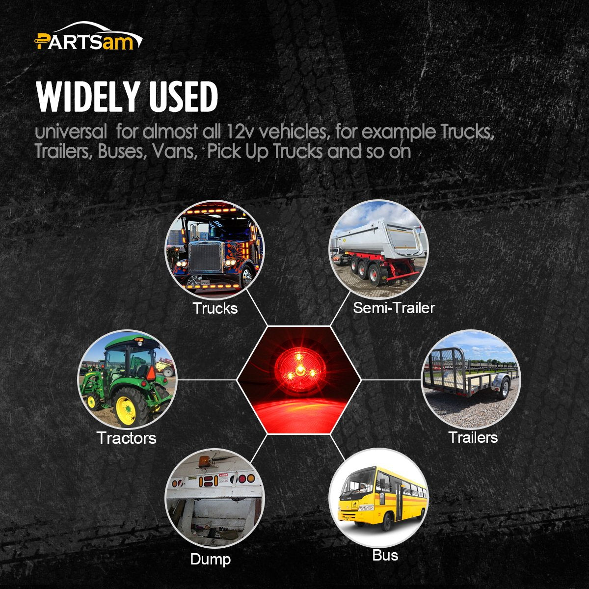 Q: What applications are suitable for the Parstam 2 inch Round LED Marker Light?A: The Parstam 2 inch Round LED Marker Light is versatile and can be used for various applications including as a clearance light, side marker light, identification light, and trailer light. It's perfect for vehicles such as semi-trucks, trailers, service vans, buses, and utility trucks.