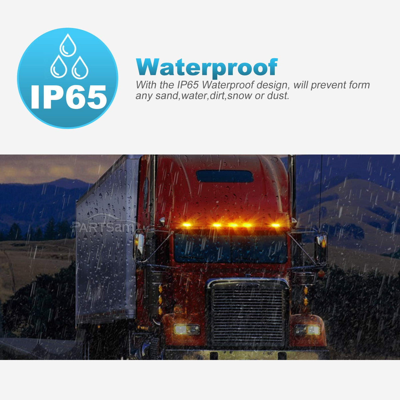 Partsam 5Pcs Cab Marker Roof Light 888-5125 Amber Lens Amber Light Top Lights Assembly Compatible With International Prostar/Lon