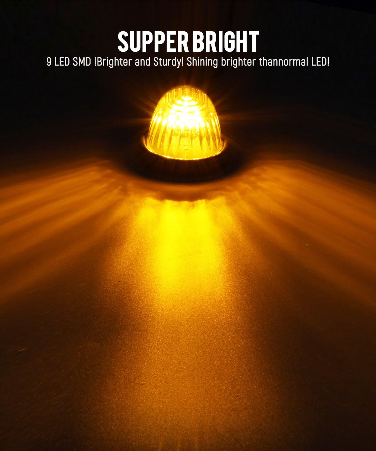 Q: What are the specifications of the LED lights?A: Each Teardrop Cab Light features 9 super bright LEDs, providing enhanced night visibility. They have a smoke lens with an amber light color and operate at 12V. The lights are also waterproof, ensuring reliable performance in heavy rain.