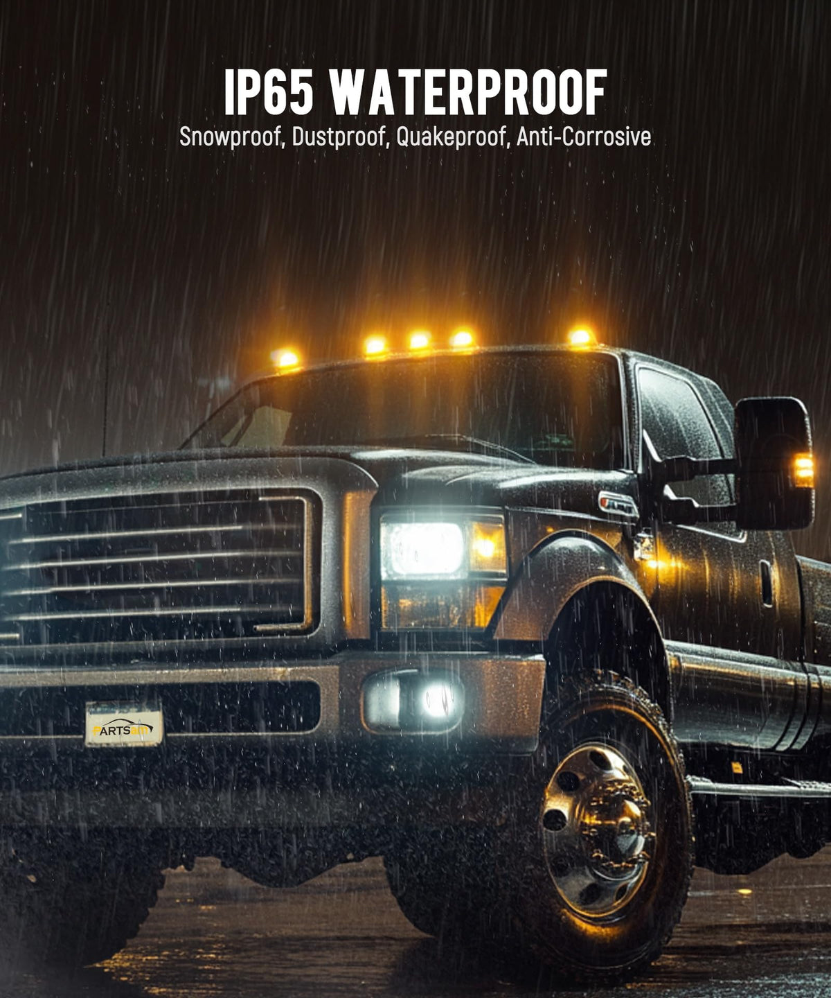 Q: Can I use these lights in heavy rain?A: Yes, the Parstam Teardrop Cab Lights are designed with a waterproof feature, making them suitable for use in heavy rain. This ensures that your vehicle remains well-marked and safe in various weather conditions.