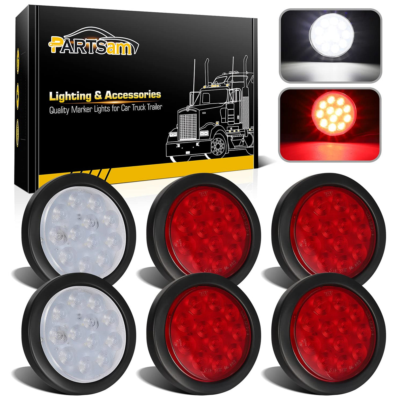 Partsam 6Pcs 4 Inch Round Led Trailer Tail Lights Kit - Round Led Stop Turn Tail Back-Up Reverse Fog Lights 12 Led Include Light
