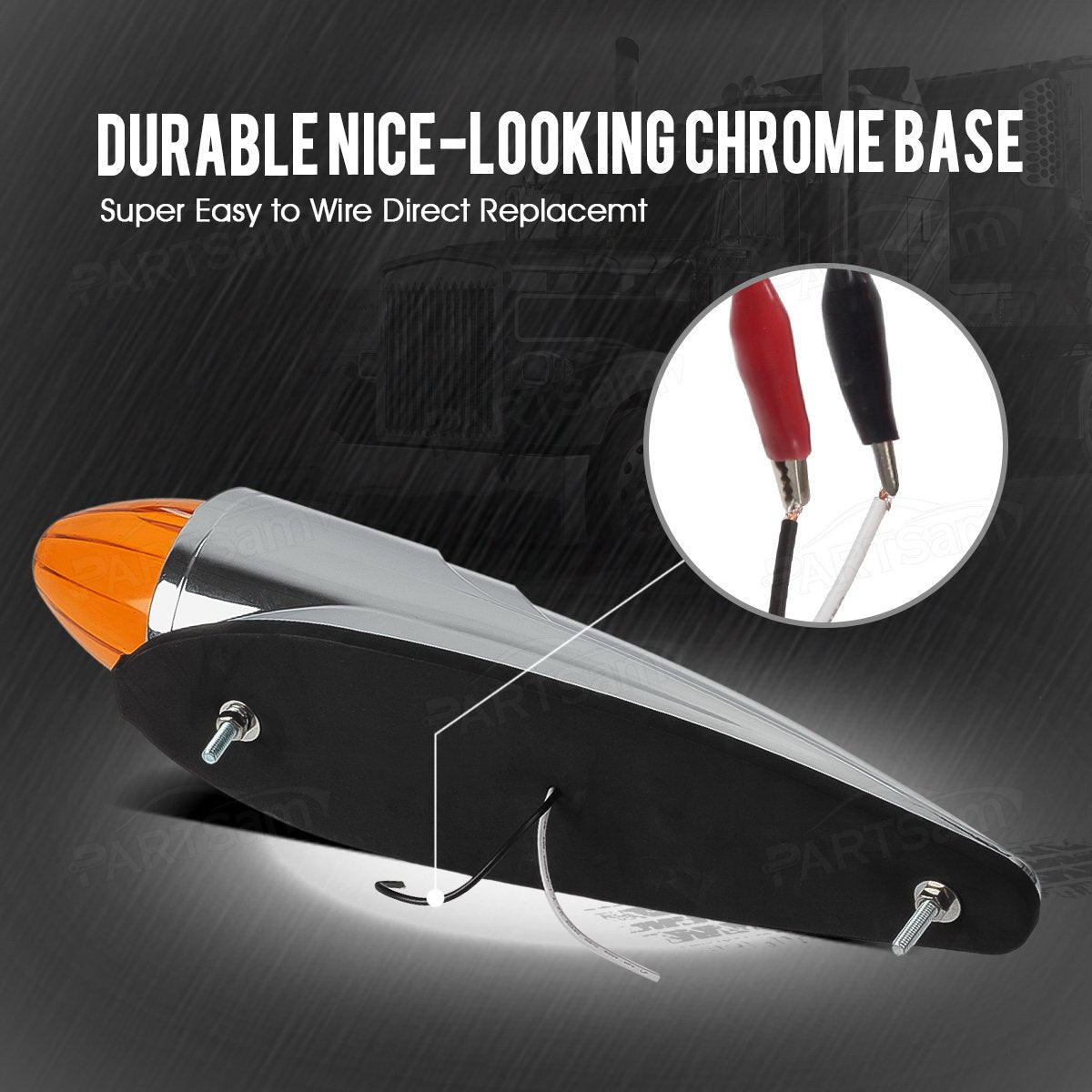 Partsam 7Pcs 17 Led Torpedo Cab Lights Chrome Amber Led Top Cab Marker Roof Running Lights Assembly Compatible With Kenworth/Pet