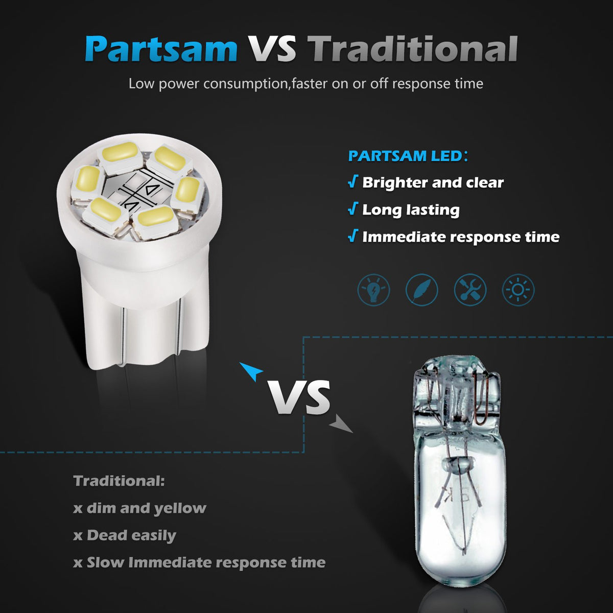 Partsam T10 194 168 Led Dash Instrument Light Bulbs White With Twist Lock Socket, Super Bright T10 Instrument Panel Gauge Cluste