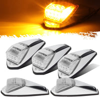 Partsam Truck Cab Lights 5Pcs Clear/Amber Top Roof Running Led Marker Lights Waterproof 17 Led W/Chrome Base Compatible With Pet