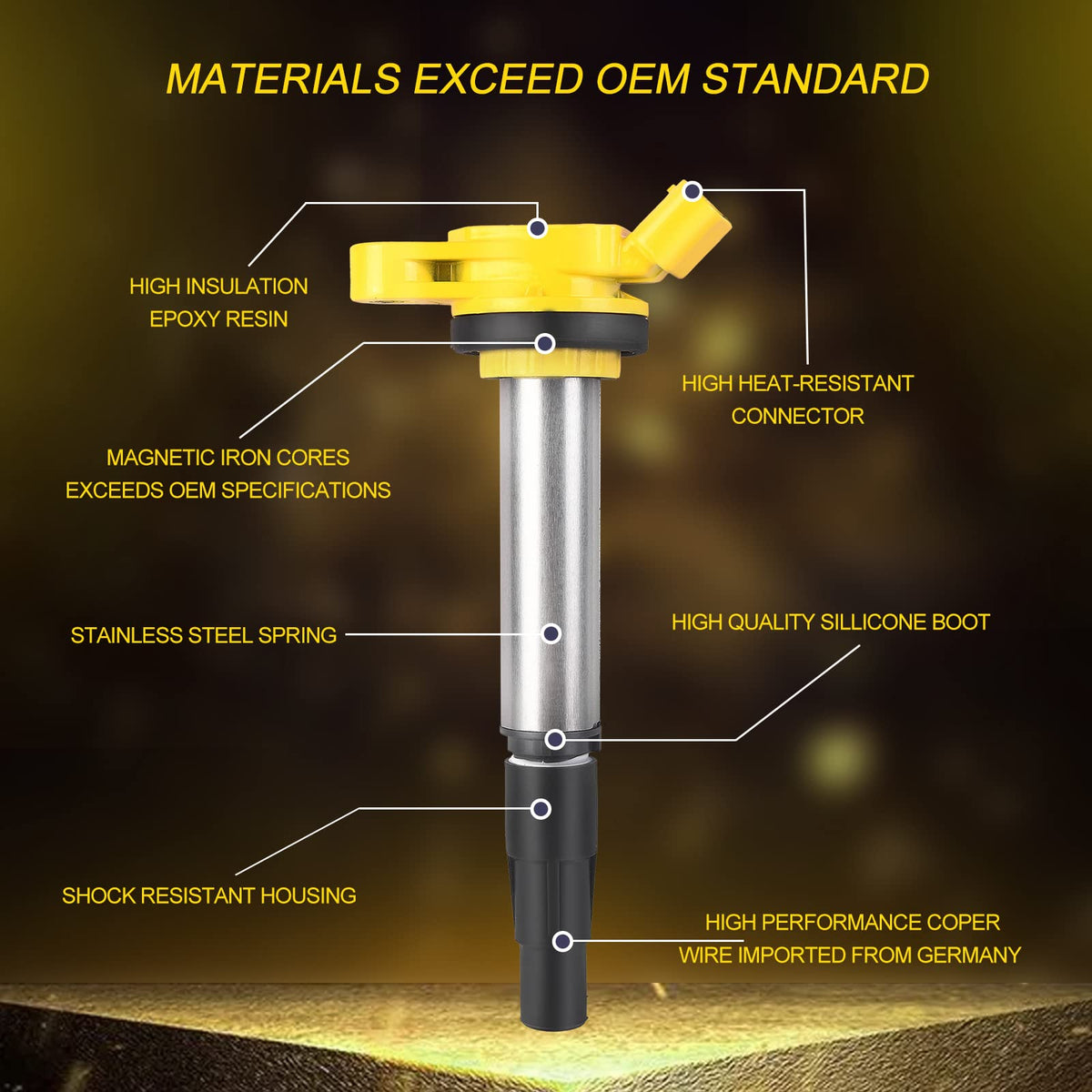 Applicable: Replacement for Toyota: Replacement for 2009-2017 Corolla L4 1.8L Replacement for 2011 Corolla L4 1.8L Replacement for 2017 Corolla IM L4 1.8L Replacement for 2009-2014 Matrix L4 1.8L Replacement for 2010-2015 Prius L4 1.8L Replacement for 2012-2017 Prius V L4 1.8L Replacement for Scion: Replacement for 2016 IM L4 1.8L Replacement for 2008-2014 XD L4 1.8L Replacement for Lexus: Replacement for 2011-2016 CT200H L4 1.8L Replacement for Pontiac Replacement for 2009-2010 Vibe L4 1.8L Replaces Part Number: UF-596, UF-619, 90919-02252, 90919-02258, C1714, 5C1771, E1096, E1119, 52-2126, IC686, IC722, 19205, UF619, UF596, GN10341 Terminal Quantity: 4 Pins Package include: 4 x Ignition Coil Pack, 1 x Pair of Gloves