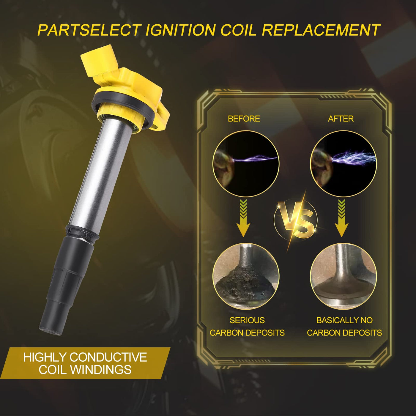 Partselect 4Pcs Ignition Coil Pack Uf596 Uf619 Replacement For Toyota Corolla 09-17, Matrix 09-14, Prius 10-15, For Lexus Ct200H