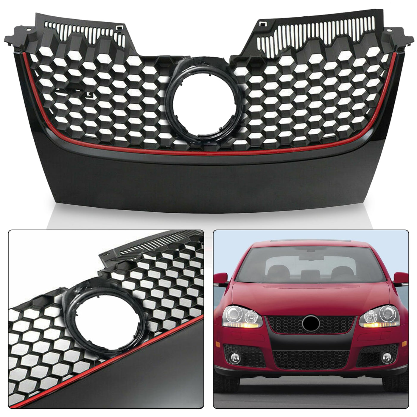 Partsflow Front Upper Main Black W/Red Trim Mesh Grille For 2006 2007 2008 2009 Volkswagen VW GTI For 2006 2007 2008 2009 Volksw