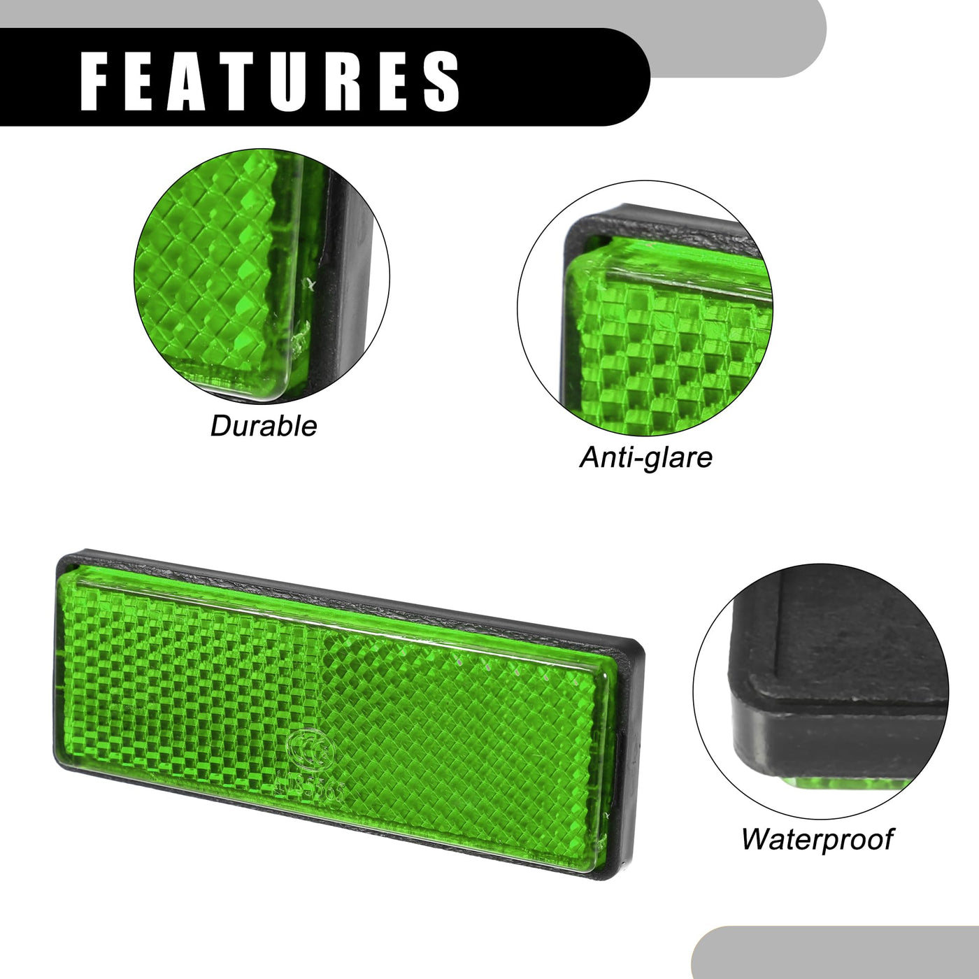 Partuto 4Pcs 3.46'X1.26' Universal Reflector - Rectangle Motorcycle Bike Safety Reflector Increase Visibility And Safety On The Road - Plastic Green