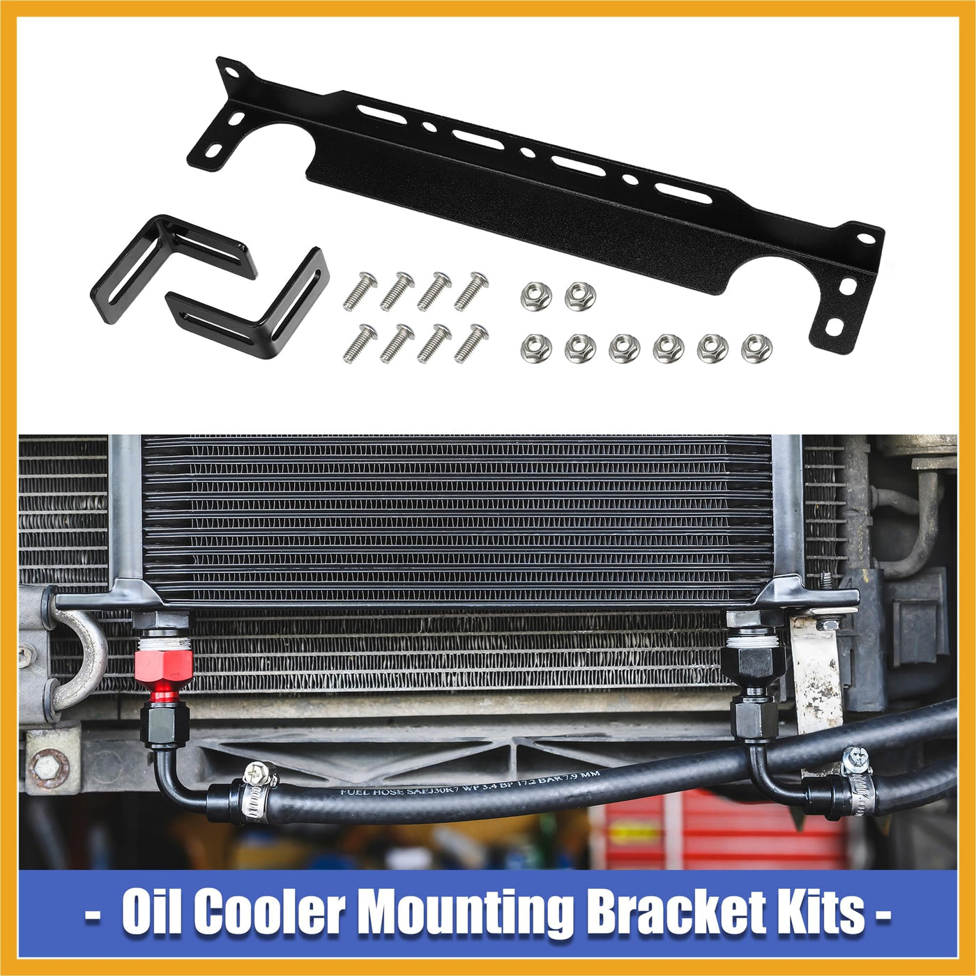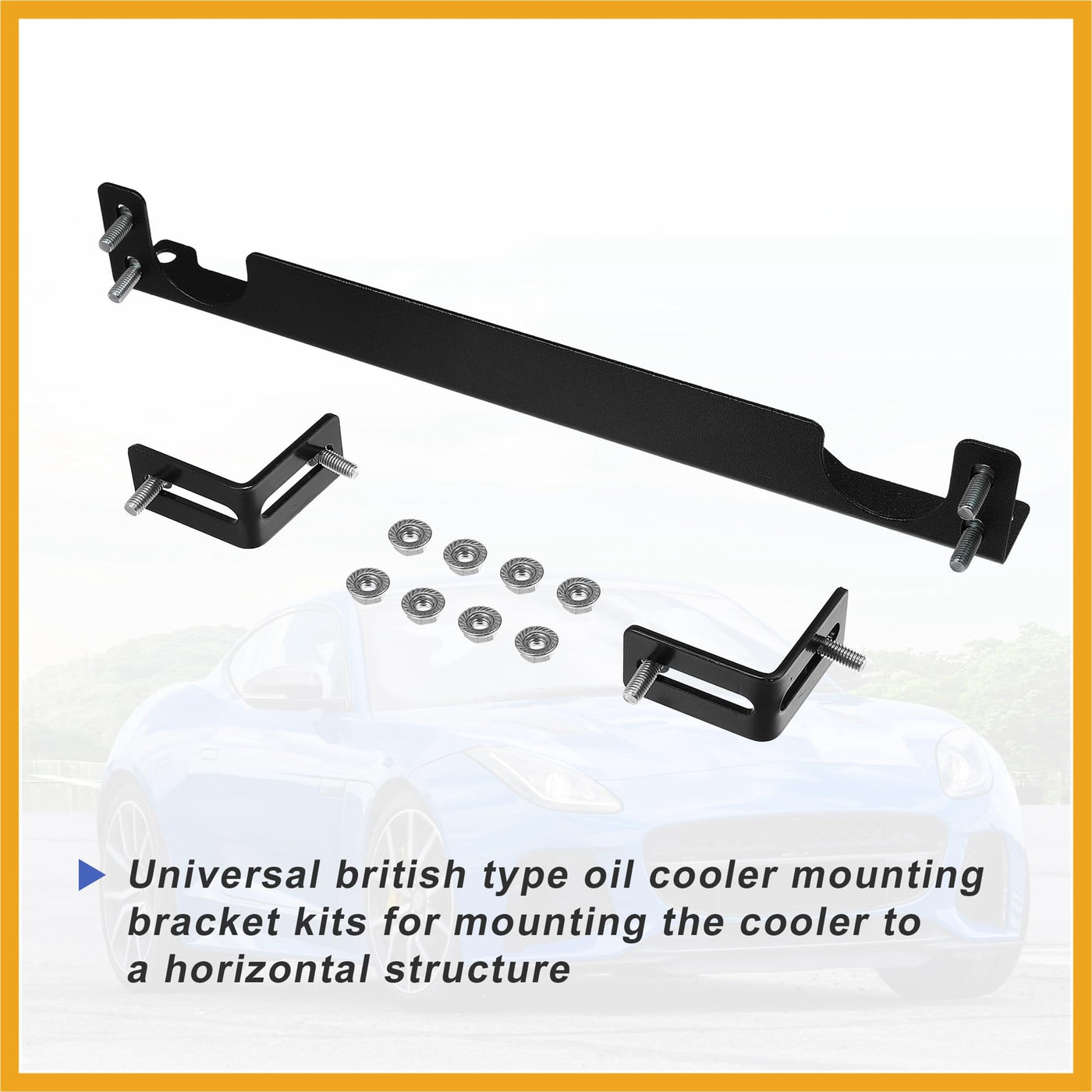 Feature:Oil cooler bracket to cool oil, gearbox and rear differential, common to UK oil coolers.Pre-drilled hole design, firm installation, protect the cooler from vibration.Made of durable materials, it is temperature-resistant, wear-resistant, and corrosion-resistant, and it is not easy to deform after long-term use.The installation kit includes the required hardware to attach the bracket to the cooler, no modifications required, no installation manual included, professional installation recommended.Specifications:Type:Mounting Bracket KitColor: BlackMaterial: Aluminum AlloyBracket Total Length: 330mm / 12.99''Distance between cooler inlet/outlet hole centers: 248mm / 9.76''Thread Size: M6 x 1Note:Please allow 1-3cm error due to manual measurement.Package Included:1 x Oil Cooler Mounting Bracket Kit