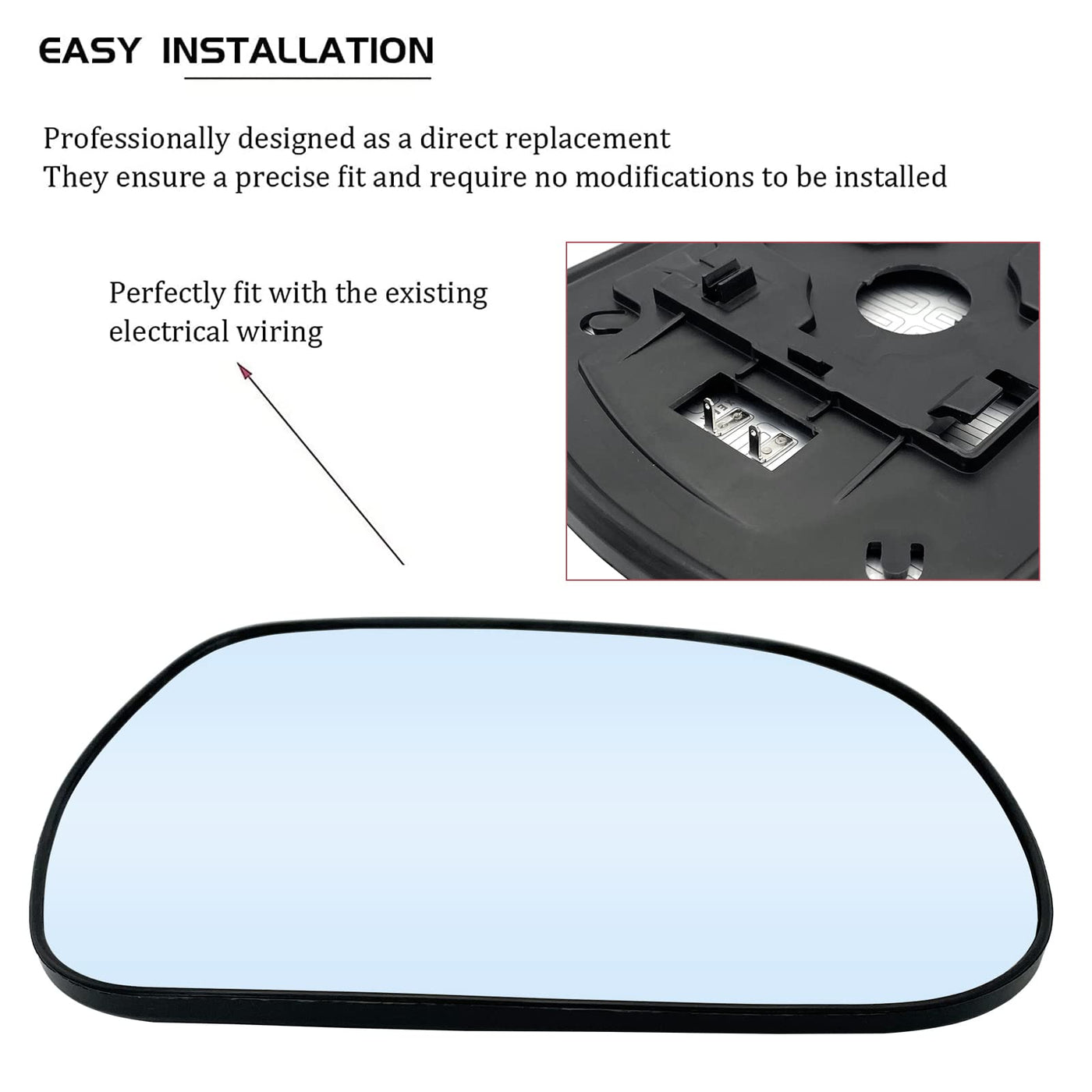 Q: Can I install this mirror glass myself, or do I need professional help?A: You can easily install this mirror glass yourself as it has identical mounting points to the factory mirror. It connects to existing electrical wiring, and the installation can be completed in just a few minutes.