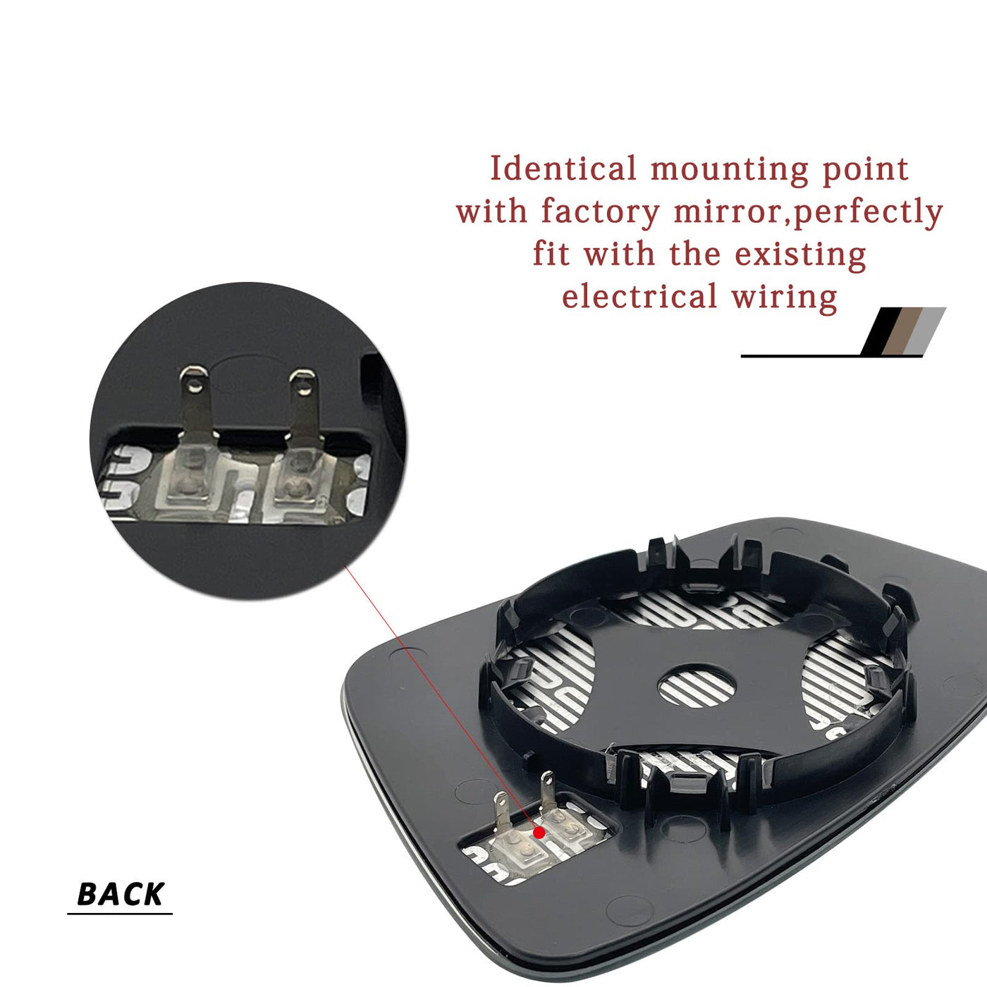Q: What makes this side mirror glass a better choice compared to others?A: This replacement mirrors not only meets or exceeds OEM standards but is also 100% tested before shipping. Its accurate design ensures a proper fit, and the use of high-quality materials enhances visibility and longevity.