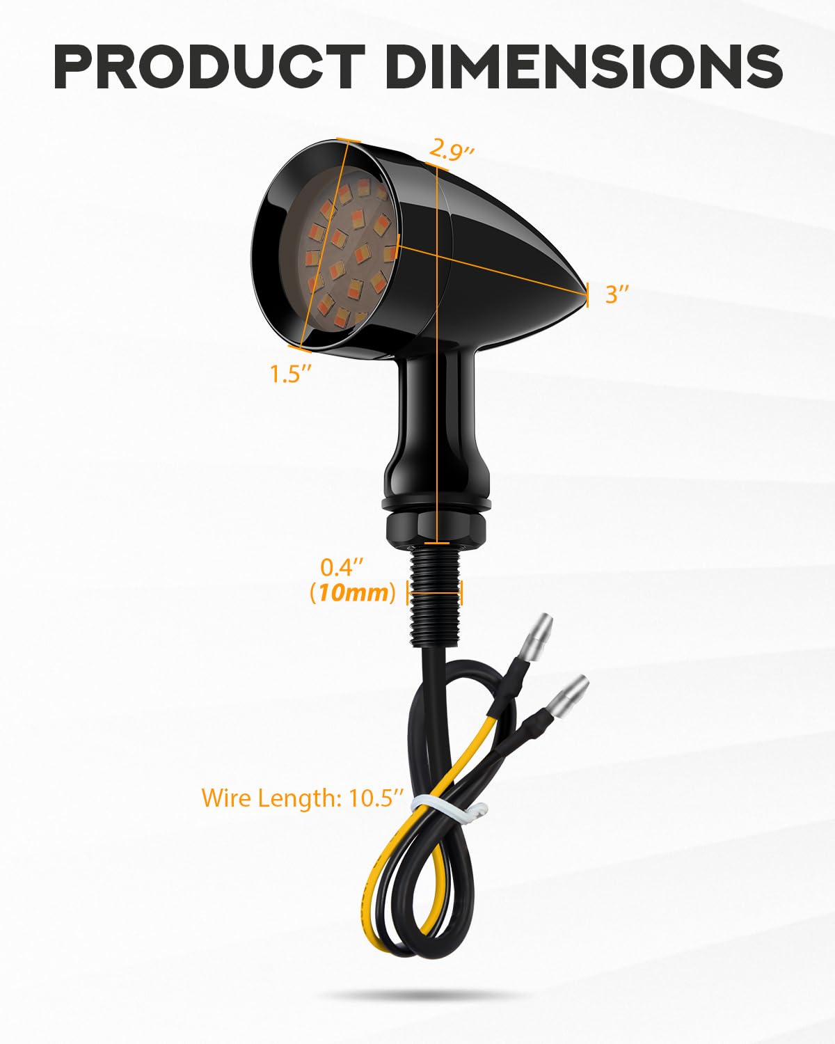 Pbymt 2Pcs Motorcycle Bullet 24 Leds Front Turn Signal Lights Amber Smd Blinkers 10Mm Mount Hole Compatible For Honda Yamaha Suzuki Kawasaki Harley Chopper Bobber (Black)