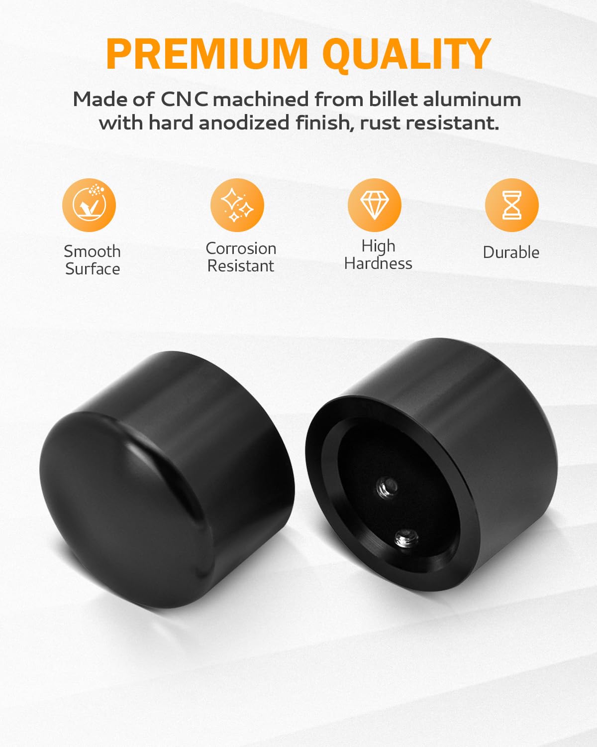 Feature: Excellent Performance: These high quality front axle nut covers can protect front axle hardware from dirt, moisture, dust and other outer damages;conceal front axle hardware for a clean custom look. Stylish: The front wheel axle nut cover feature contrasting black and sculpted machined surfaces that send reflections of light in all directions. Perfect match for front axle hardware, making your vehicle unique and cool.