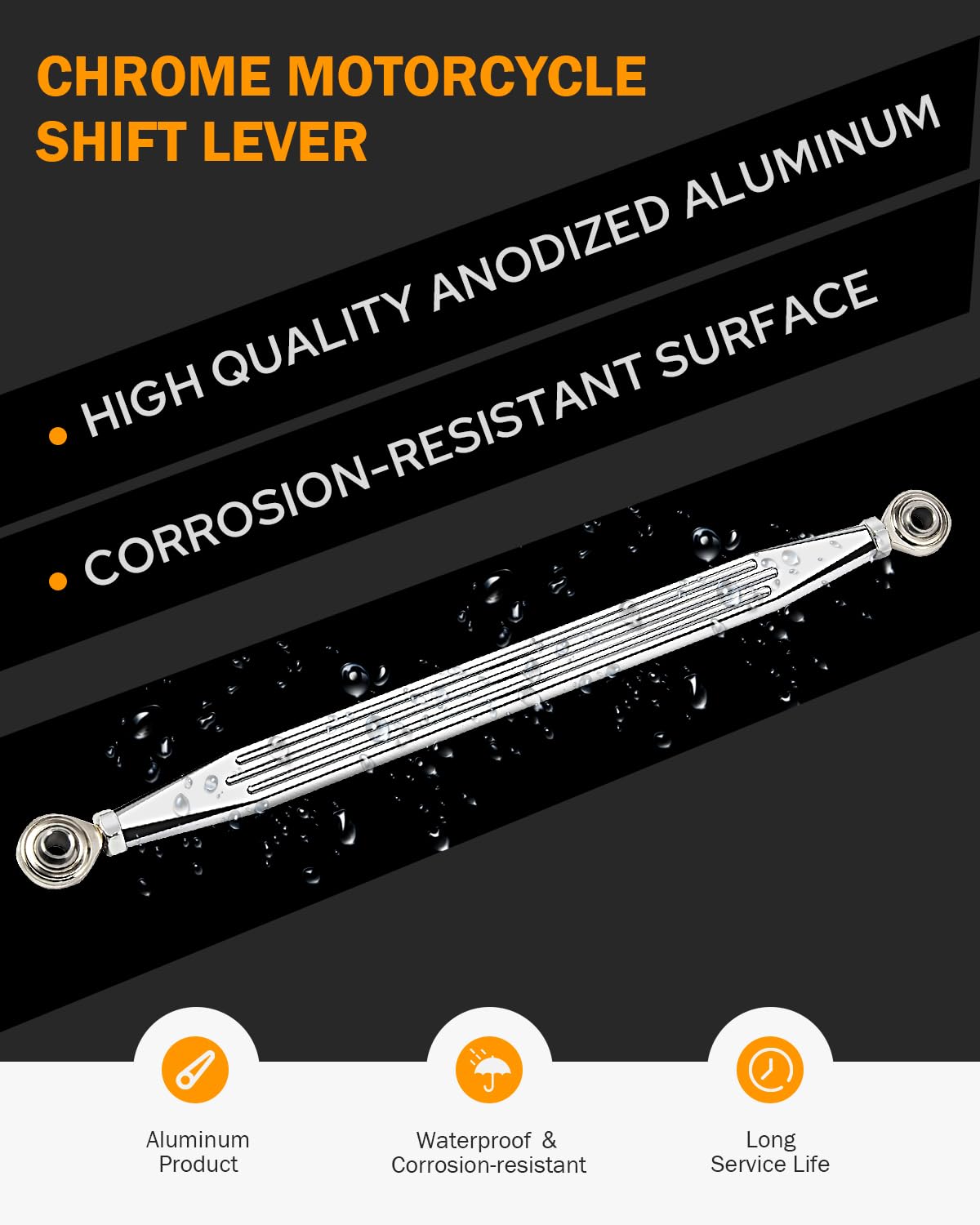 Q: What materials are used in the construction of this shift linkage?A: This shift linkage is made of high-quality billet aluminum and is covered in chrome, making it lightweight and visually appealing for your motorcycle.