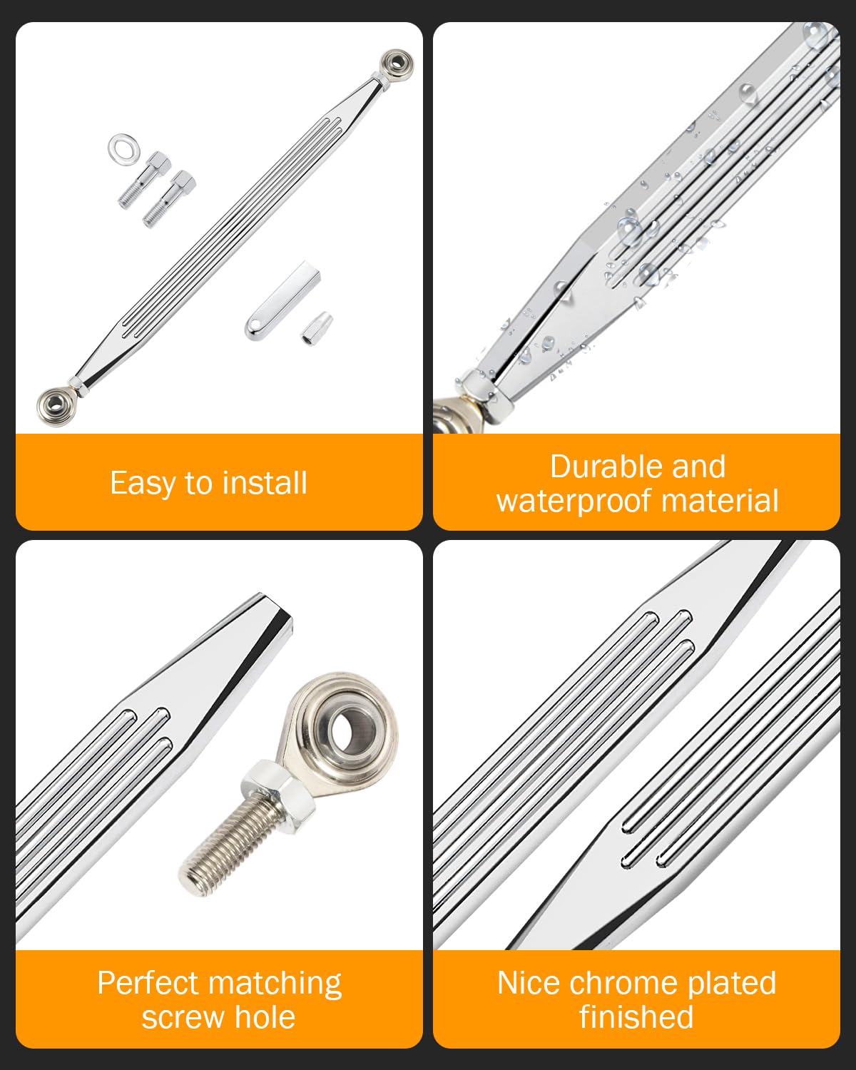 Aftermarket shift linkage compatible for 1986- 2022 Harley Softail (except 18-later FXBB and FXLR), Touring and Trike models.Does NOT fit 97-99 FLSTS or models equipped with Softail Extended Reach Forward Controls.WARM TIPS:Please check your motorcycle's model and confirm compatibility and specification of this item before ordering.WARRANTY:You are backed by 24-Month warranty since purchase date, please feel free to send email first if there s any issue, solution will be offered once details confirmed.FEATURES:Application: Mounted between gear shift lever and transmission,tightening up your shifting makes the bike have a much more positive shift. The length of this shift linkage can be adjusted.Premium Quality: Made of high quality billet aluminum and covered in chrome,made this linkage so light weight and looks awesome.Dress the left side of the engine on your bike very nicely.SPECIFICATION:Condition: Aftermarket Brand new.Material: Made of high quality billet aluminumColor: ChromeSize: As Picture Shown(please check it carefully to ensure this item will fit on your bike)FITMENT:Fit for 1986-2022 Harley Softail (except 18-later FXBB and FXLR), Touring and Trike models.Does NOT fit 97-99 FLSTS or models equipped with Softail Extended Reach Forward Controls.Harley Electra Glide 1986-2022Harley Road Glide 1986-2022Harley Road King 1994-2022Harley Street Glide 1986-2022Harley Tour Glide 1986-2022Harley Trike 2009-2022Harley Softail 1986-2022 (except Heritage Springer FLSTS 1997-1999)Harley Dyna Wide Glide 1993-2002PACKAGE INCLUDED:1 x Shift LinkageMounting Parts(As Picture Shown)Instruction NOT Included