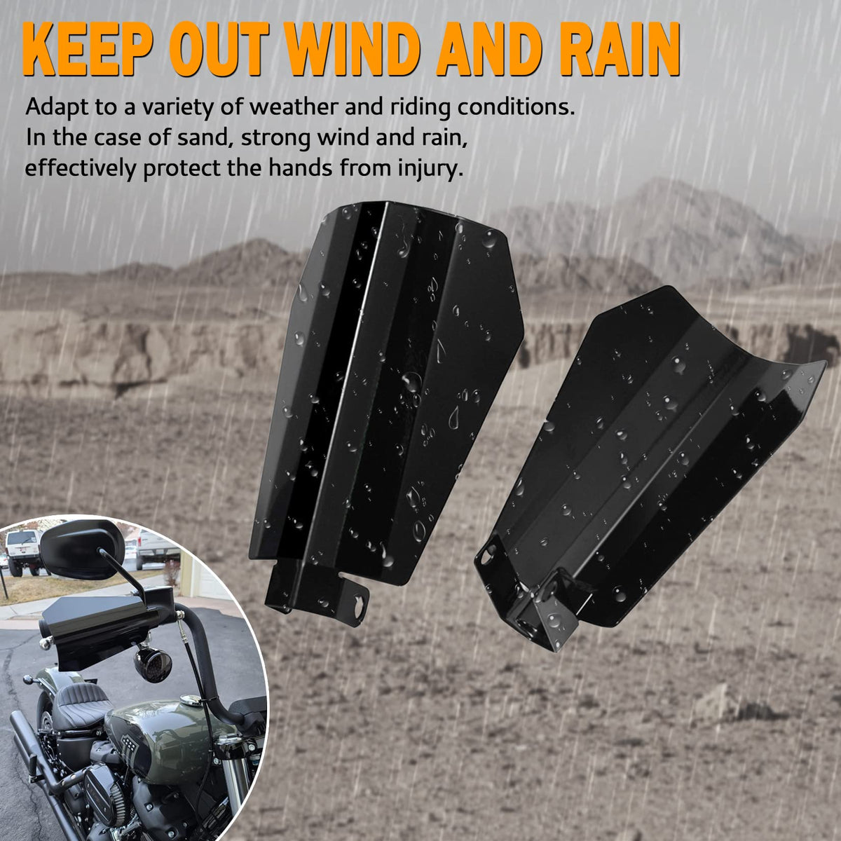 Aftermarket medium hand guards fit for Harley Dyna, and 2006 and older Baggers Electra Street Road Glide Road King and FXR's with upgraded controls.WARM TIPS:1.One of the hand guards has longer mounting tag,it goes on the cable clutch side,the short one goes on the brake side.If you run a 2014 or Newer baggers with a hydraulic clutch , the mounting tabs don't need to be different sizes.If you mind how it looks like,you might need to modify the one hand guard that goes on the clutch side shortened the bracket down and re-drill.2.Some FXDLS models you may need to run turn signal relocation brackets fit for Harley turn signal swivel 68185-00.WARRANTY:FEATURES:Stylish,functional and durable hand guard,protect your hands from brush,rocks,mud and cold wind.Keep your hands warm and dry while riding.With enough room for brake cables control and other devices.SPECIFICATION:Condition: Aftermarket Brand new.Material: Constructed of 16 gauge stainless steel with 12 gauge reinforced mounting tabs.Color: Gloss BlackLength: Overall length of guard( both the large and the medium ) is 7.3 inches from mounting base to guard end.FITMENT:Fit for Harley Dyna, and 2006 and older Baggers Electra Street Road Glide Road King and FXR's with upgraded controls.PACKAGE INCLUDED:A Pair of Medium Hand GuardInstruction NOT Included